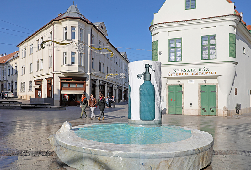 Téliesítik a szökőkutakat: esztétikus ponyvát kapnak az alkotások