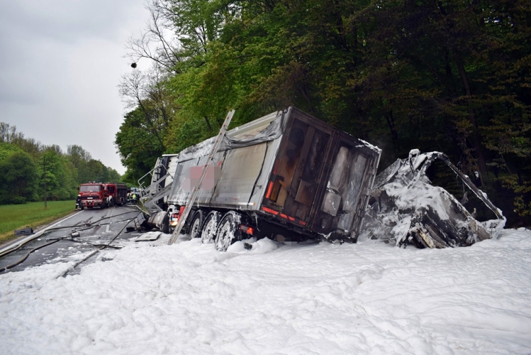 A Katasztrófavédelem tájékoztatása szerint a helyszínen a tűzoltók három vízsugárral oltják a lángokat. A balesethez a pannonhalmai hivatásos és a veszprémvarsányi önkéntes tűzoltók vonultak. Az egyik jármű műtrágyát szállított, ezért a katasztrófavédelmi mobil labor a helyszínre tart.