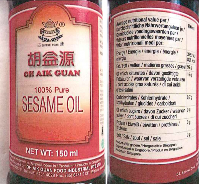 A Nemzeti Élelmiszerlánc-biztonsági Hivatal (Nébih) visszahívta az Oh Aik Guan szezámolaj terméket - közölte a hatóság kedden az MTI-vel.