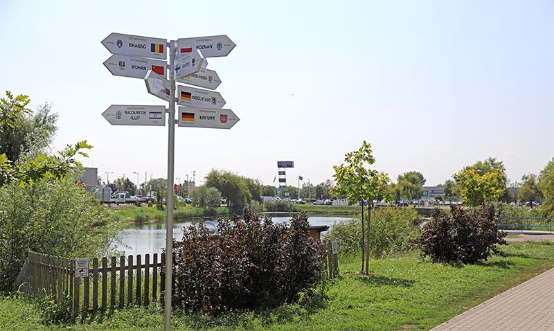 Győr testvérvárosairól került ki tájékoztató tábla az adyvárosi tó partjára a napokban.
