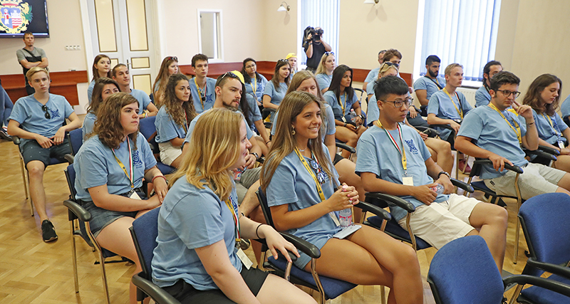 Az ismerkedő estet követően, hétfőn a győri Városházán kezdődött a program, ahol Radnóti Ákos köszöntötte a táborozókat. „Mindig szívesen látjuk a külföldi vendégeket Győrben, örülök, hogy most egy 13 nemzetet felvonultató csapat is ellátogatott hozzánk, a Lions nemzetközi ifjúsági cseretáborának keretében. Azt gondolom, egy tartalmas hetet fognak itt eltölteni, hiszen nem csak Győrt, de a környező települések nevezetességeit is megismerik majd. Az önkormányzatnál sokat dolgozunk azon, hogy az itt élők és azok is, akik ellátogatnak ide, jól érezzék magukat! Büszkék lehetünk az elmúlt években elvégzett tudatos munkára, melynek eredményeként remélhetőleg a fiatalok is magukkal viszik Győr és egész Magyarország jó hírét!” –zárta az alpolgármester.