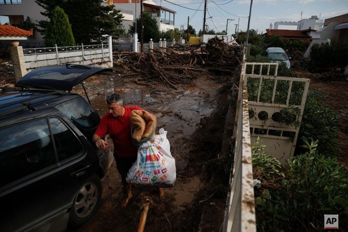 Egy túlélő menti a menthetőt, miután a házát lerombolta az időjárás Görögországban
