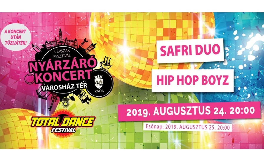 A Total Dance Fesztivál a ’90-es és a 2000-es évek diszkó slágereit hozza el Győrbe, a Városháza elé, ahol augusztus 24-én este nyolc órakor kezdődik a fergetegesnek ígérkező buli (esőnap: augusztus 25. 20:00 óra).
