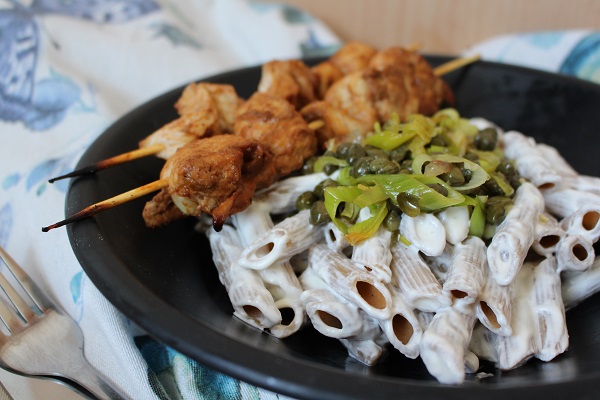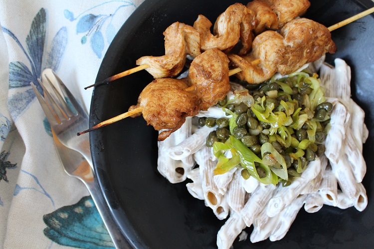 4. Forró serpenyőben megpirítom mindkét oldalát. Amennyiben kilóg a pálcika, általában letörök a végéből és pár percre le is szoktam fedni a húst, hogy biztosan megfőjön a belseje is. Tálalás előtt összekeverem a zsíros tejföllel a tésztát, mivel nem tűzforró, krémes marad és a sült hússal tálalom.