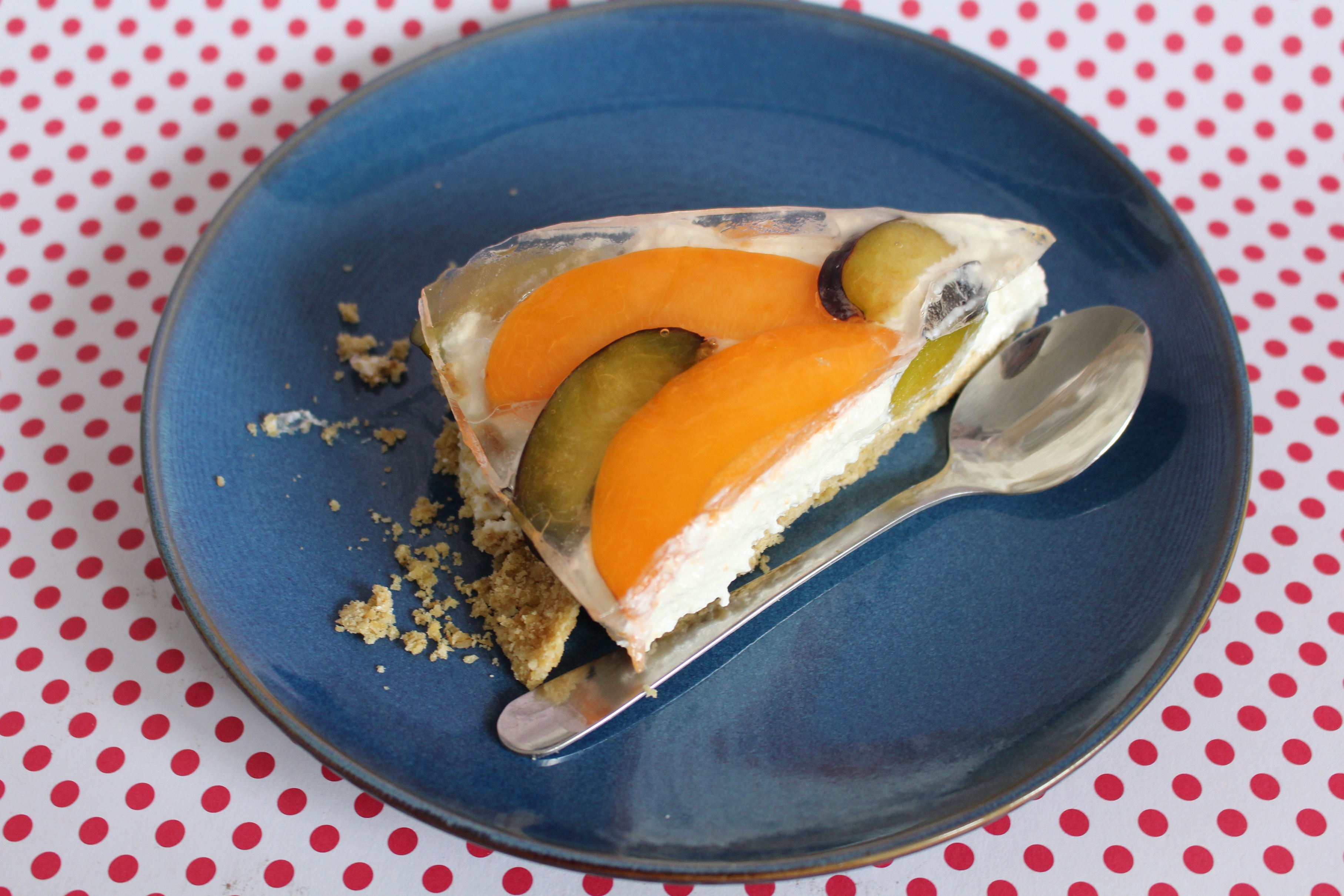5- A zselatinos túrót, a zabalapot a hűtőben hűtöttem 30 percig, majd összeállítottam a pitét, ismét hagytam a hűtőben 10 percig, utána raktam ki gyümölcsökkel és csurgattam le zselatinnal. Ismét pihent 1 órát.