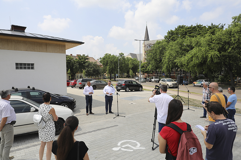 Dr. Fekete Dávid alpolgármester elmondta: az újvárosi parkoló kialakításakor 400 négyzetméter terület kapott térkő burkolatot. Harminc normál és egy mozgáskorlátozottak számára kialakított beállót építettek ki. Négy új villanyoszlop kapott helyet, s elültettek hat magaskőris fát. A parkolóhelyek kiépítése 17,3 millió forintba, a közvilágítás pedig 9 és fél millió forintba került. A parkolóhelyekről gyalogosan jól elérhető az evangélikus iskolaközpont, a Kossuth iskola, az egyetem hangversenyterme, de még a belváros is.