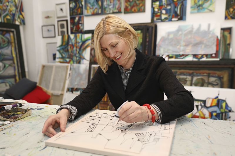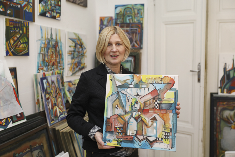 Urbánus lélek vagyok, így ezúttal ezt a tematikát követi majd a tárlat. Az utóbbi időben foglalkoztatnak a városképek, az art deco, a geometrikus világok, figyelem a homlokzatokat. Inspirált New York, Ingolstadt, Bali, Firenze és Győr építészete, ami visszaköszön munkáimon is.
