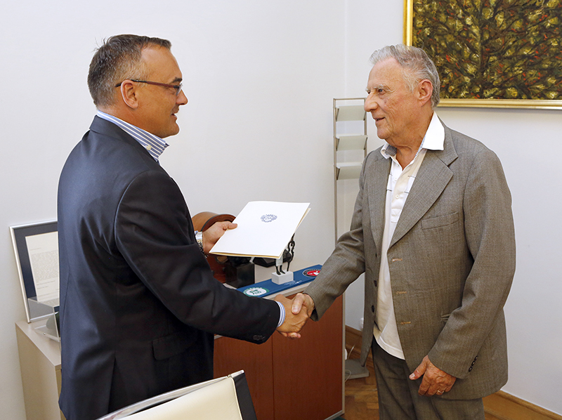 Az önkormányzat ezüst emlékérmét adta át a festőművésznek Borkai Zsolt, aki életművének jelentős alkotásait adományozta Győrnek.