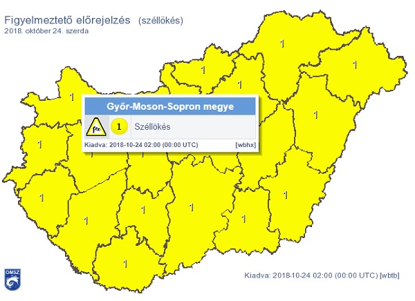 A várt legerősebb széllökések meghaladhatják a 70 km/h-t.