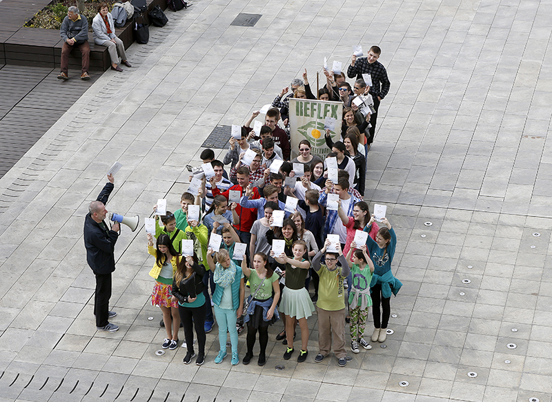 A Reflex környezetvédő egyesület felhívásra a Bencés gimnázium és a Gyakorló általános iskola diákja vettek részt a villámcsődületen. Lajtmann József környezetvédő elmondta, először 1970- ben, az USA-ban, Denis Hayes hívó szavára diákok, egyetemisták demonstráltak a Föld védelmében.