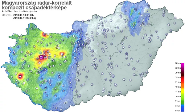 A Veszprém megyében található Kislődön szombat reggelig pl. 67 mm-t mért automatánk, összehasonlítás képpen az augusztus havi átlag 50-60 mm körül mozog.