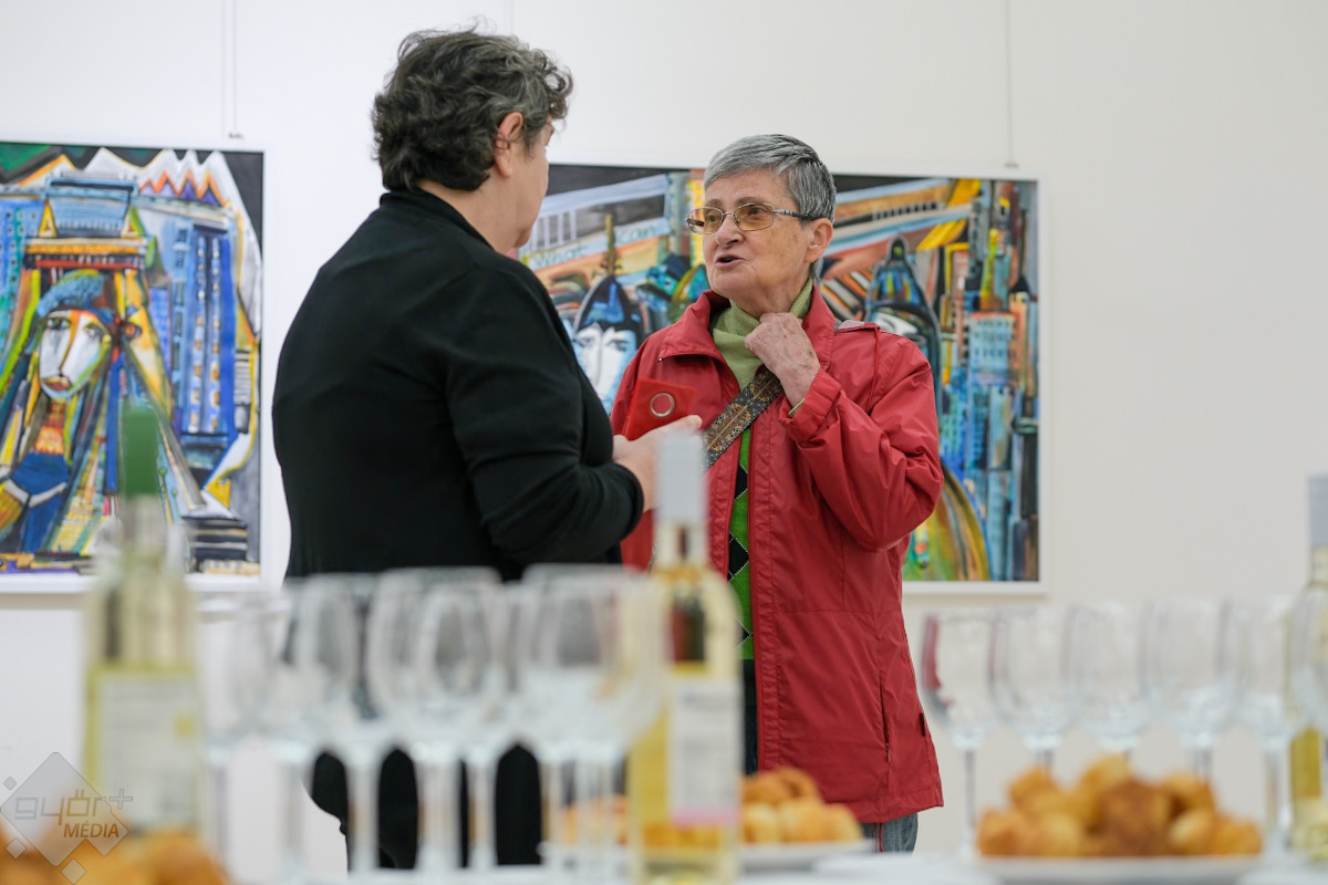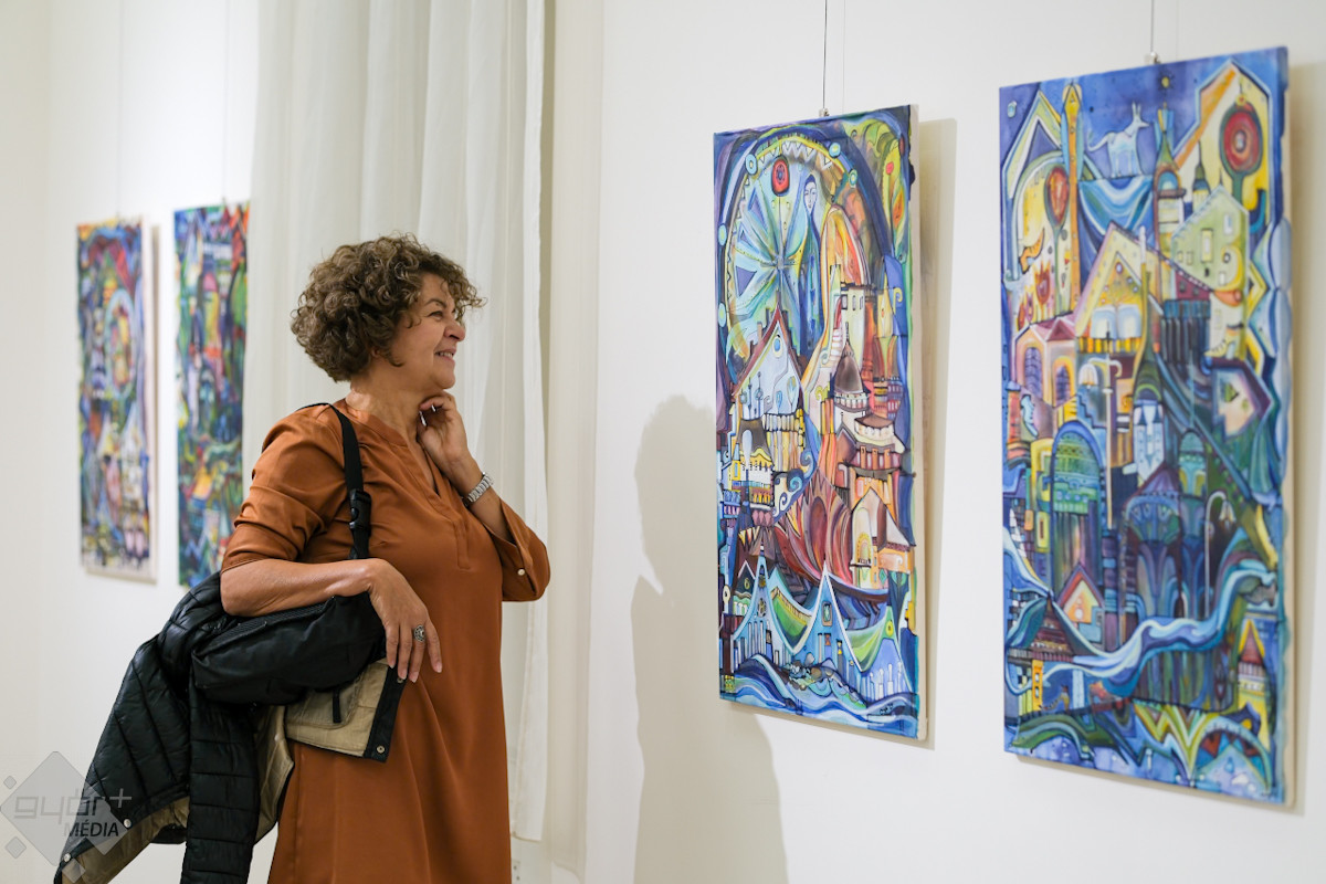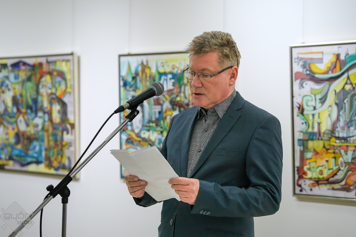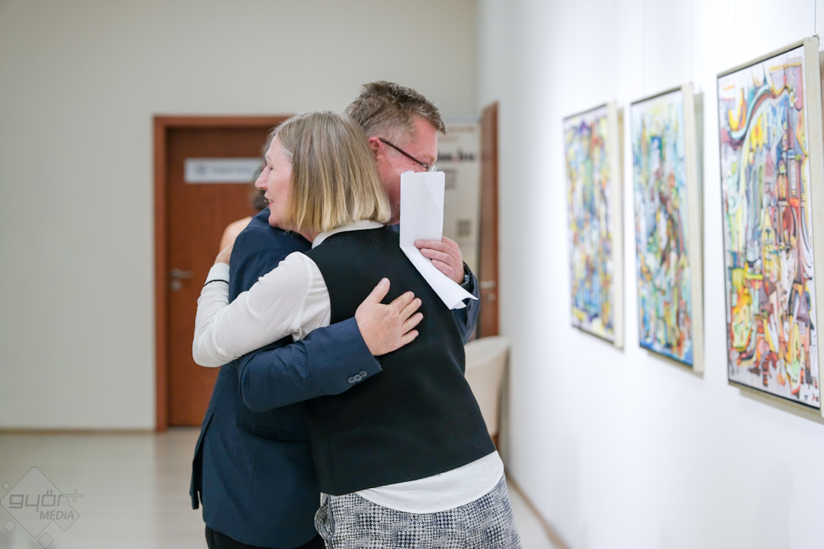 A képek egyszerre komolyak és játékosak. Mintha egy városi mese elevenedne meg; groteszk és mégis mosolyt fakasztó világ, ahol a káosz és a rend folyton kacsintgat egymásra.” – hangsúlyozta beszédében.
