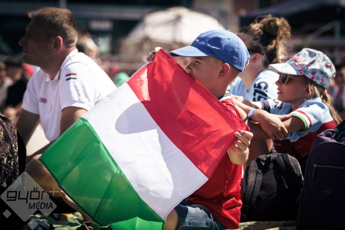Az árvíz miatt még nem az előre meghirdetett helyszínen, a Rába parton várta a szurkolókat a kivetítő elé, hanem ideiglenesen a Dunakapu térre. Itt nézhették meg a 2024-es Európa-bajnokságon a magyarok debütáló meccsét azok, akik társaságban szeretnek szurkolni. Sajnos a győzelem nem jött össze, de a hangulatra így sem lehetett panasz.