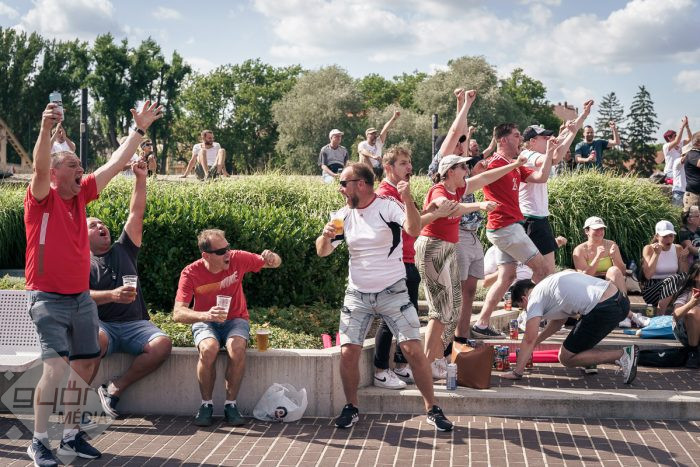 Viszont a város semmiképp sem szerette volna, ha a magyar meccsekről lemaradnak azok a szurkolók, akik társasággal szeretnek mérkőzést nézni, így ideiglenes helyszínként a Dunakapu teret jelölték meg. Itt este 21 órakor eleve lesz rendezvény, hiszen a nyárnyitó koncertet a Bagossy Brothers Company adja majd. A LED-fal tehát adott volt, s bár igaz, hogy székeket, vagy sörpadokat az esti koncert miatt nem helyezhettek ki, a szurkolók ezt cseppet sem bánták.