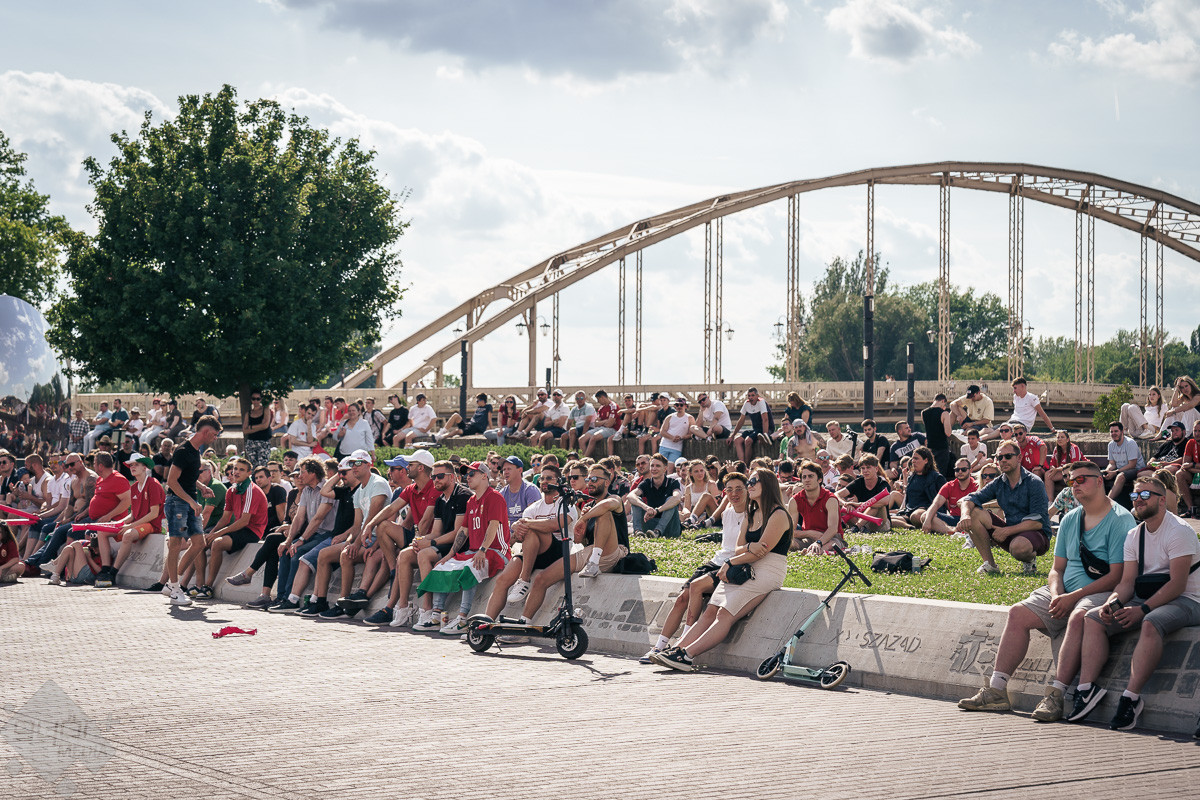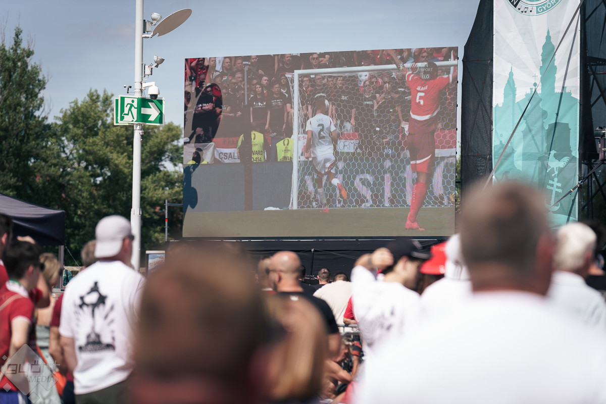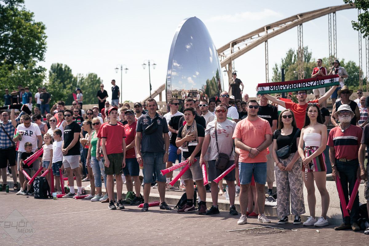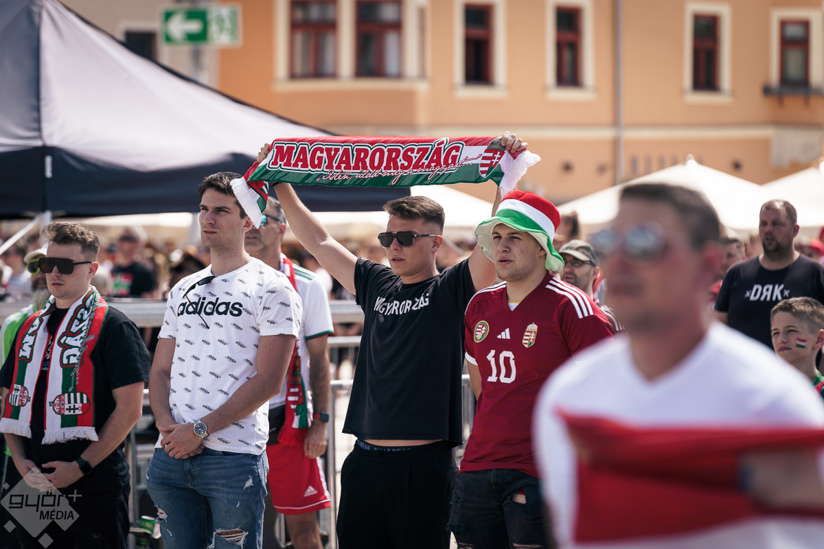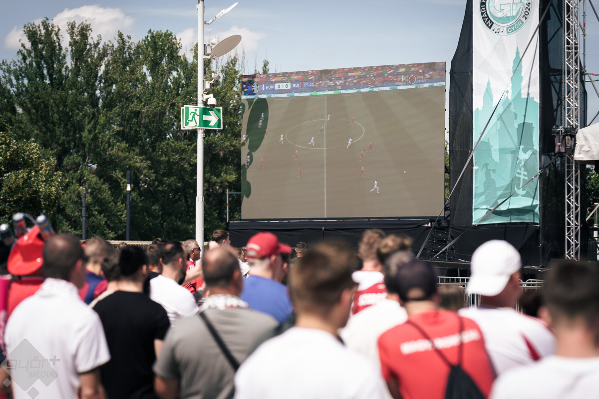 Az árvíz miatt még nem az előre meghirdetett helyszínen, a Rába parton várta a szurkolókat a kivetítő elé, hanem ideiglenesen a Dunakapu térre. Itt nézhették meg a 2024-es Európa-bajnokságon a magyarok debütáló meccsét azok, akik társaságban szeretnek szurkolni. Sajnos a győzelem nem jött össze, de a hangulatra így sem lehetett panasz.