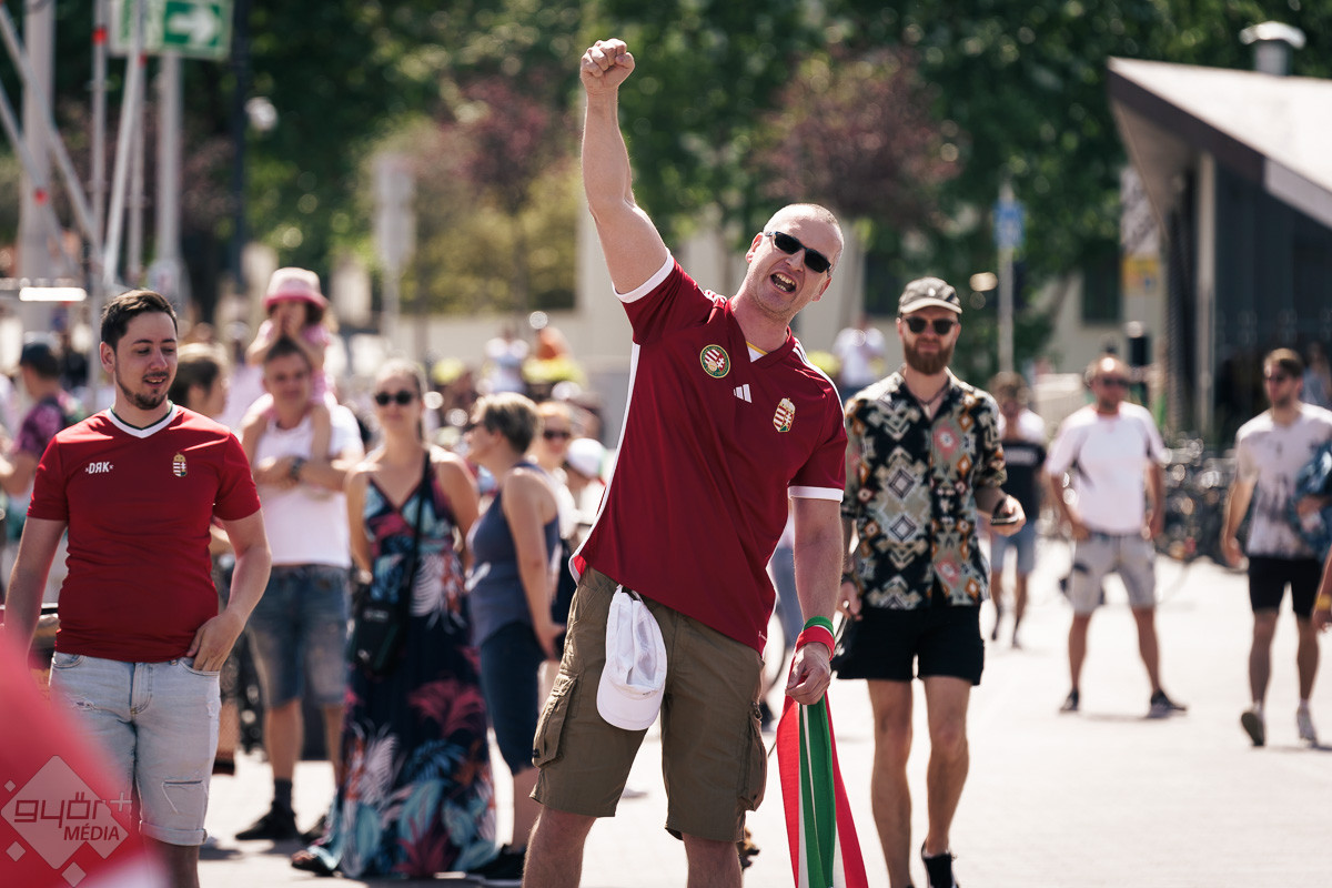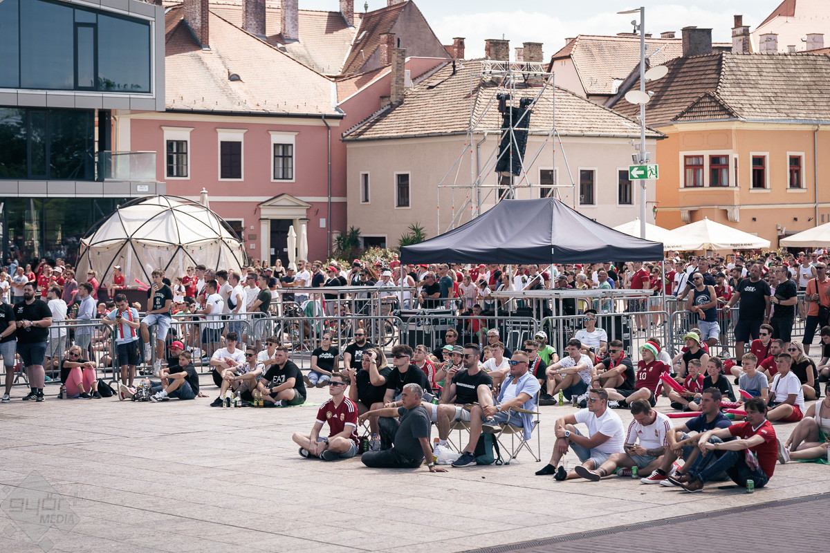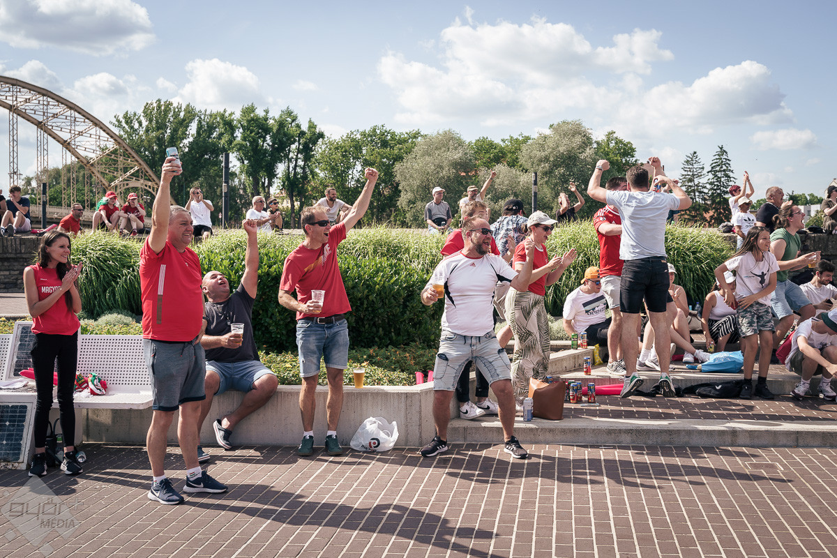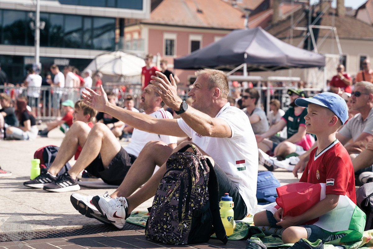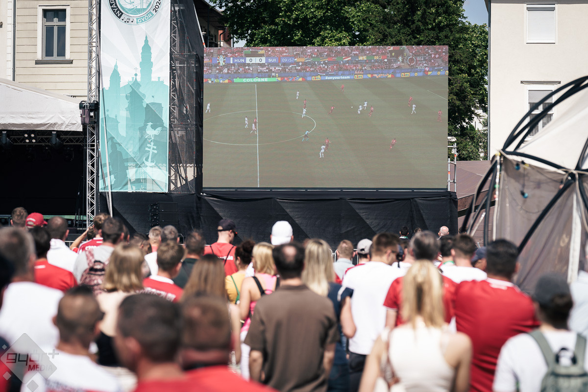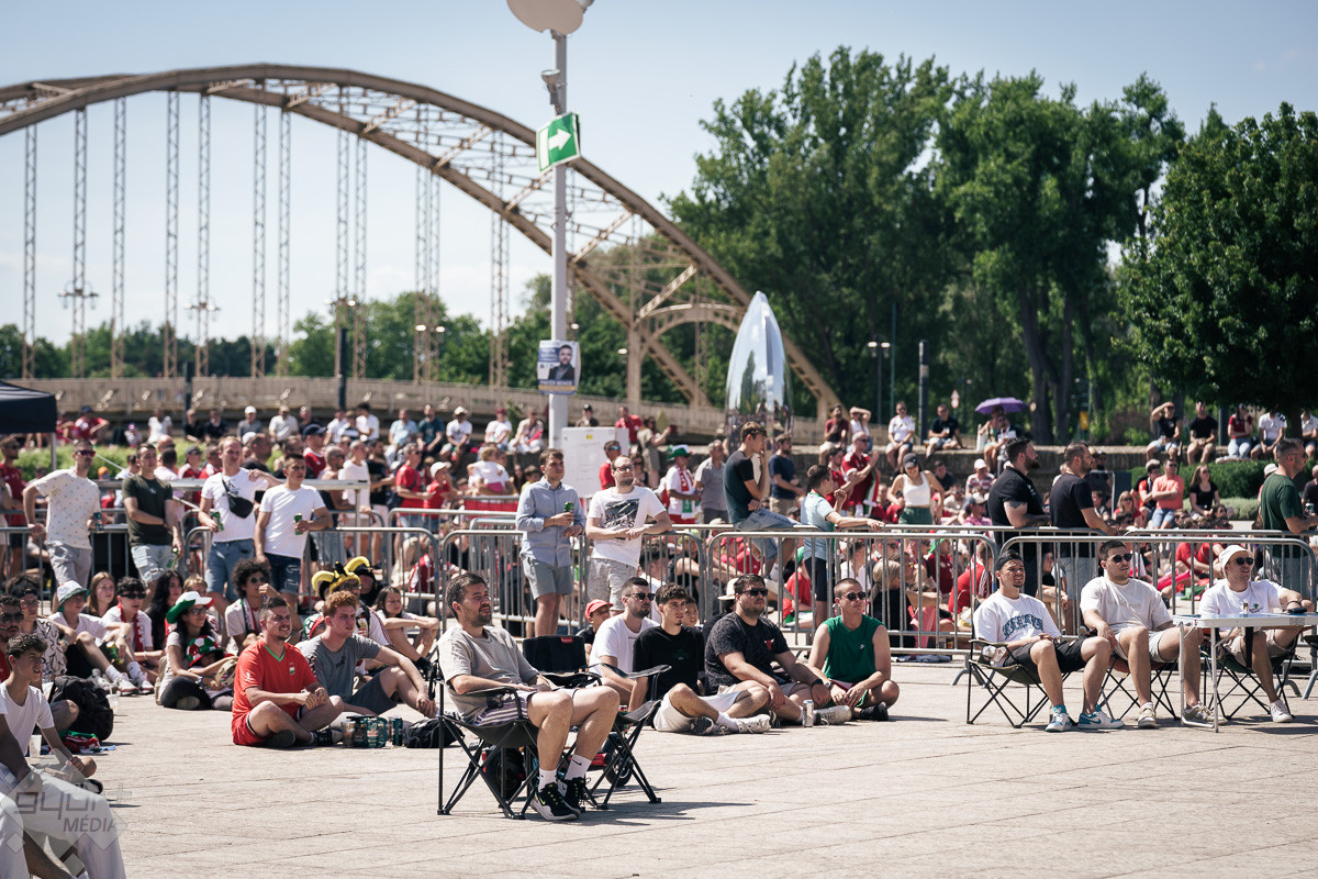 Az árvíz miatt még nem az előre meghirdetett helyszínen, a Rába parton várta a szurkolókat a kivetítő elé, hanem ideiglenesen a Dunakapu térre. Itt nézhették meg a 2024-es Európa-bajnokságon a magyarok debütáló meccsét azok, akik társaságban szeretnek szurkolni. Sajnos a győzelem nem jött össze, de a hangulatra így sem lehetett panasz.
