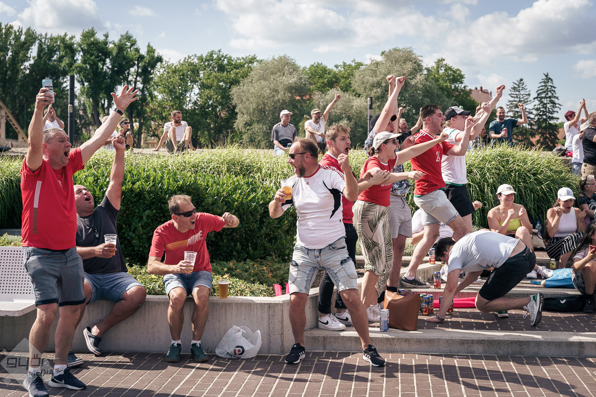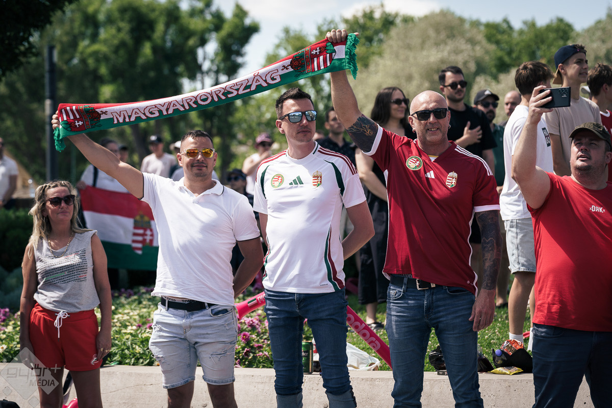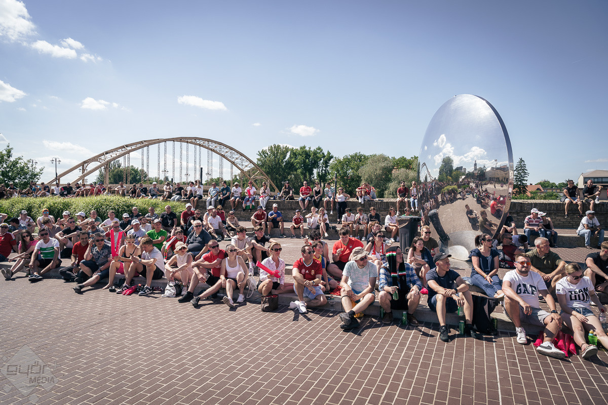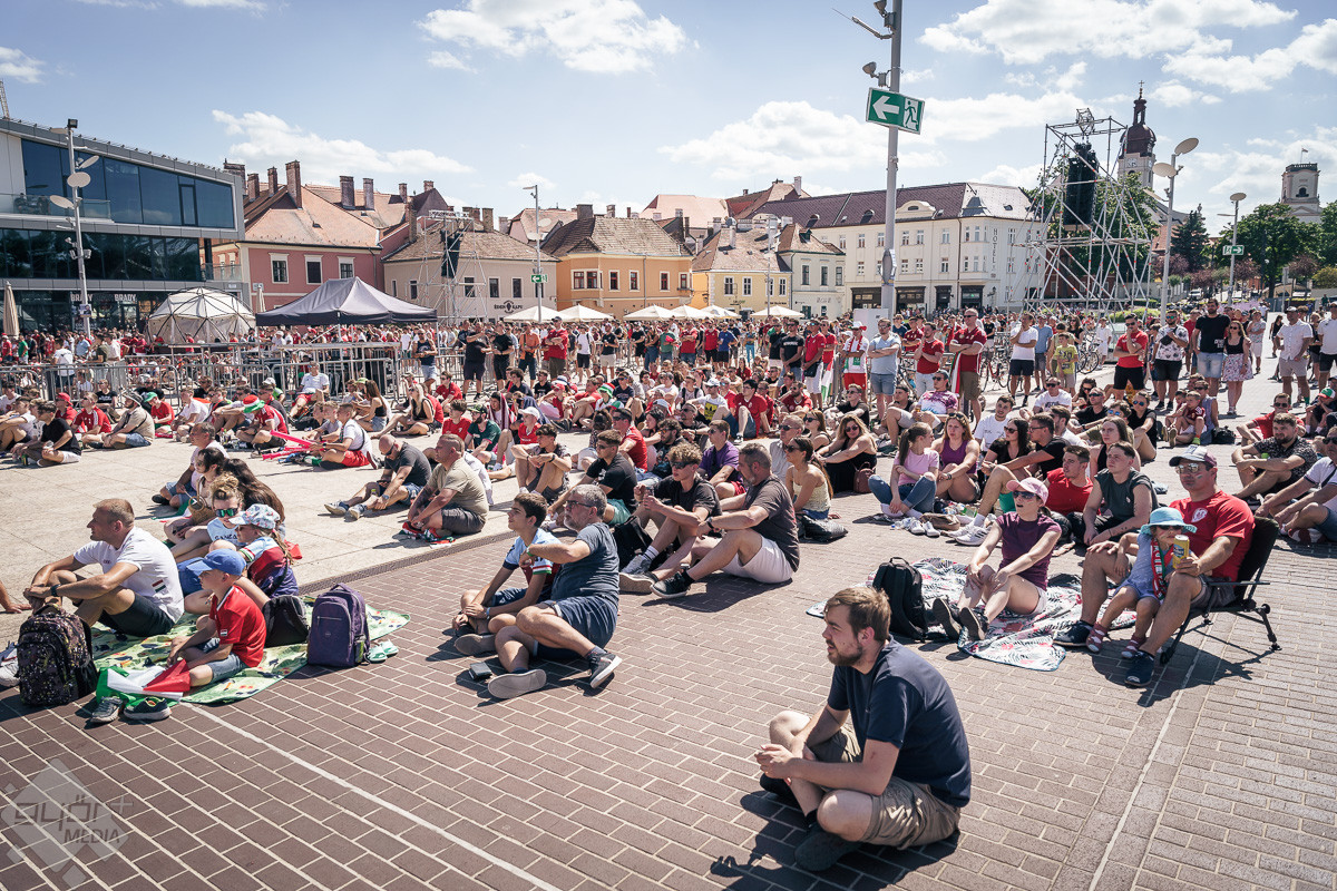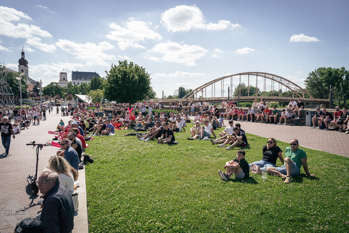 Az árvíz miatt még nem az előre meghirdetett helyszínen, a Rába parton várta a szurkolókat a kivetítő elé, hanem ideiglenesen a Dunakapu térre. Itt nézhették meg a 2024-es Európa-bajnokságon a magyarok debütáló meccsét azok, akik társaságban szeretnek szurkolni. Sajnos a győzelem nem jött össze, de a hangulatra így sem lehetett panasz.