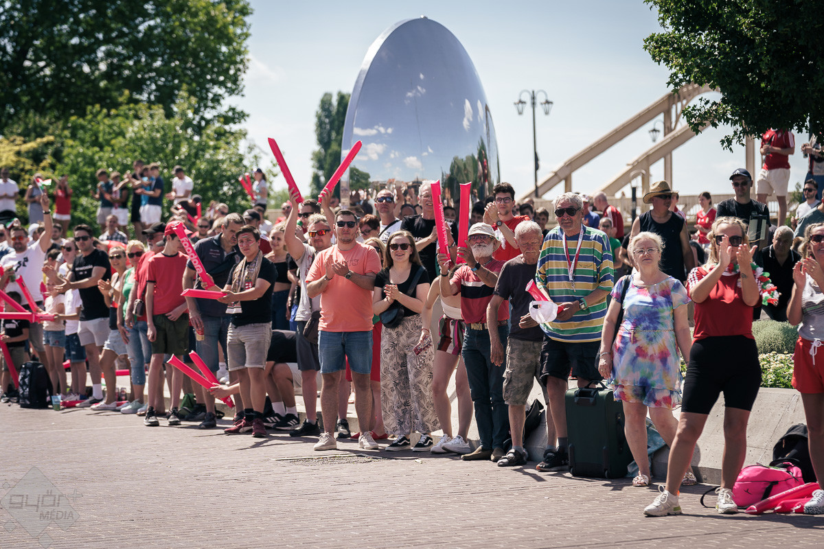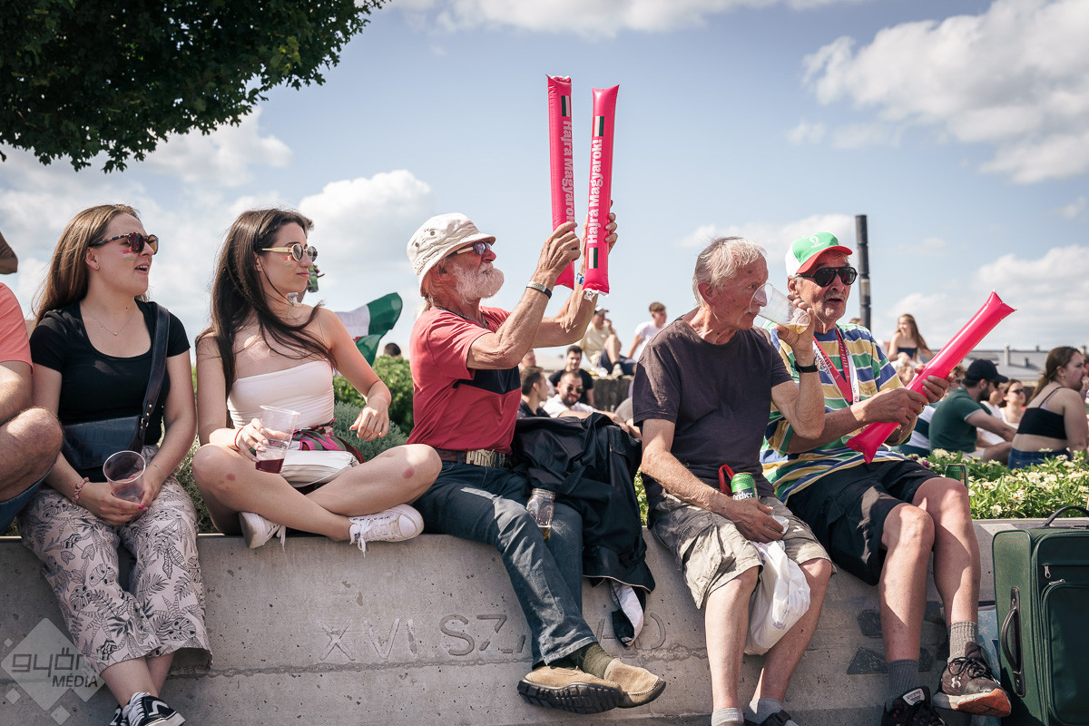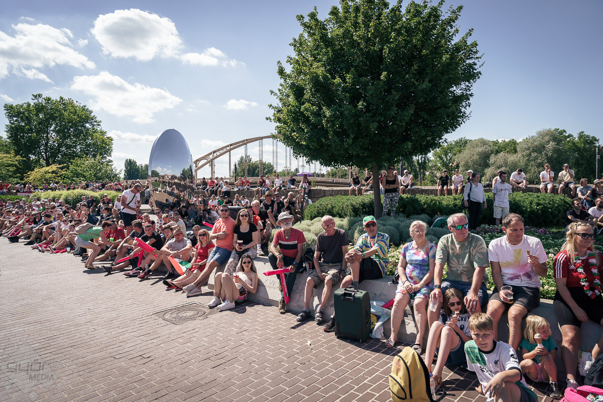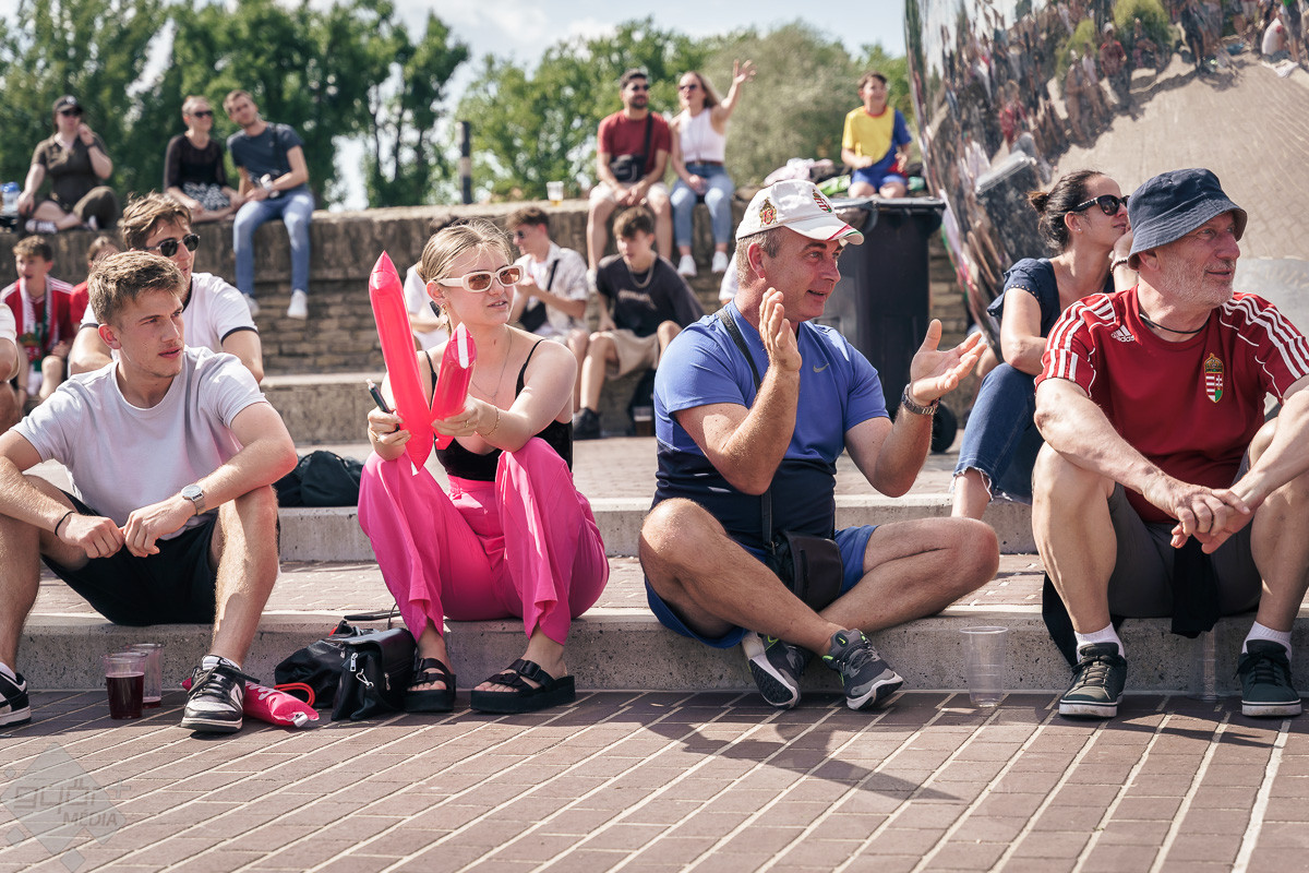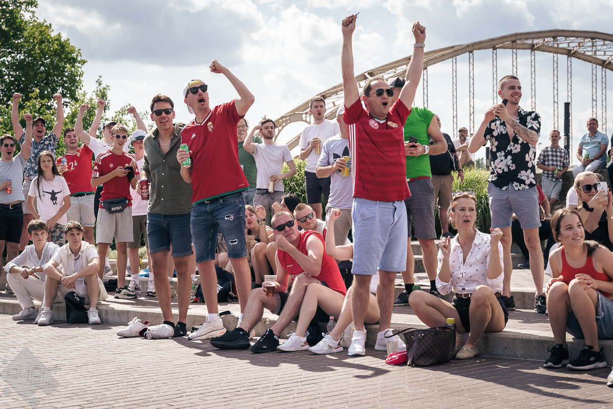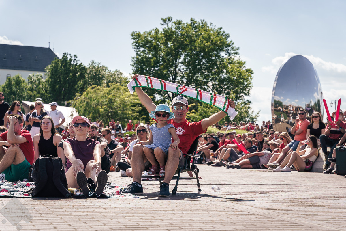 Az árvíz miatt még nem az előre meghirdetett helyszínen, a Rába parton várta a szurkolókat a kivetítő elé, hanem ideiglenesen a Dunakapu térre. Itt nézhették meg a 2024-es Európa-bajnokságon a magyarok debütáló meccsét azok, akik társaságban szeretnek szurkolni. Sajnos a győzelem nem jött össze, de a hangulatra így sem lehetett panasz.