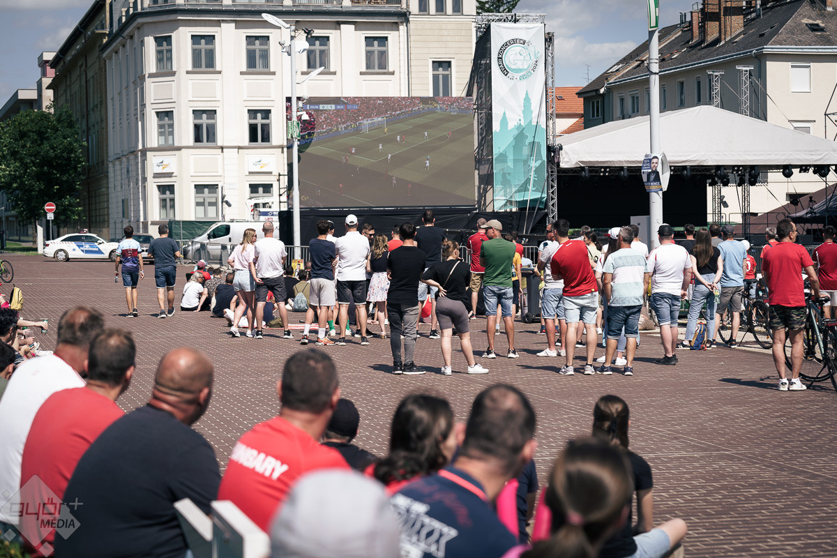 Viszont a város semmiképp sem szerette volna, ha a magyar meccsekről lemaradnak azok a szurkolók, akik társasággal szeretnek mérkőzést nézni, így ideiglenes helyszínként a Dunakapu teret jelölték meg. Itt este 21 órakor eleve lesz rendezvény, hiszen a nyárnyitó koncertet a Bagossy Brothers Company adja majd. A LED-fal tehát adott volt, s bár igaz, hogy székeket, vagy sörpadokat az esti koncert miatt nem helyezhettek ki, a szurkolók ezt cseppet sem bánták.