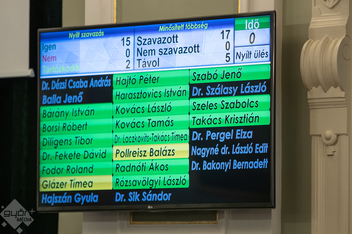 13:49 – A hatos napirendi pontban a Győr Projekt Kft. könyvvizsgálójáról szavaznak a képviselők, valamint a GYHG számára nyújtott tagi kölcsön vissza nemfizetéséről.