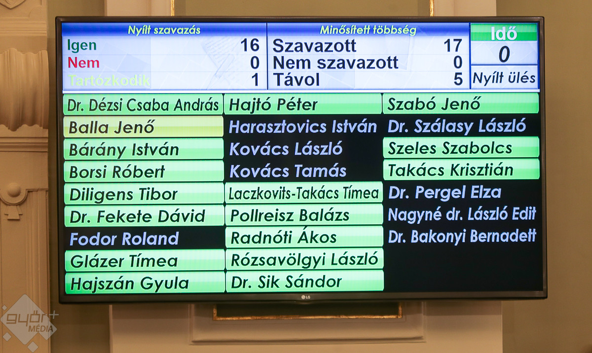 10.05. – A közgyűlés napirendjét egyhangúlag elfogadták a képviselők. Első napirendi pontban Győr építési szabályzatának módosítása szerepel.