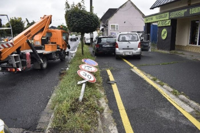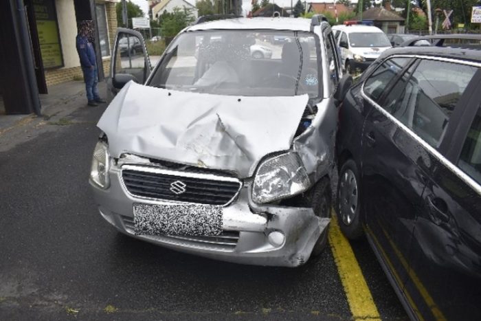 Egy 83 éves győri asszony közlekedett Suzuki típusú személygépkocsijával Győrben, a Szérűskert utcában 2022. augusztus 22-én 9 óra 20 perc körül. A Pápai úthoz érve, az „Elsőbbségadás kötelező!” jelzőtáblát figyelmen kívül hagyva autózott be a kereszteződésbe, és nem adott áthaladási elsőbbséget a neki balról érkező tehergépkocsi részére, és azzal összeütközött. Ezt követően a Suzukival a sofőr az út jobb oldalán lévő járdájára hajtott fel, ahol kidöntött egy jelzőtáblát, majd az ott parkoló Volkswagen Golf típusú gépjárműnek csapódott.