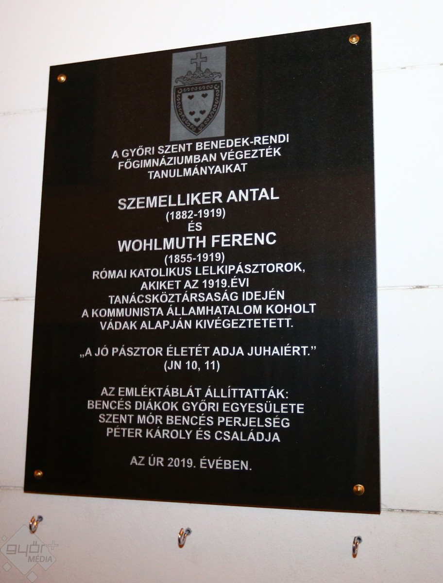 Szemelliker Antalt és Wohlmuth Ferencet, a két győri bencés öregdiákot, győri egyházmegyés katolikus papot, száz évvel ezelőtt végezték ki, tiszteletükre emléktáblát avattak csütörtökön.