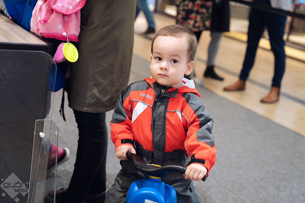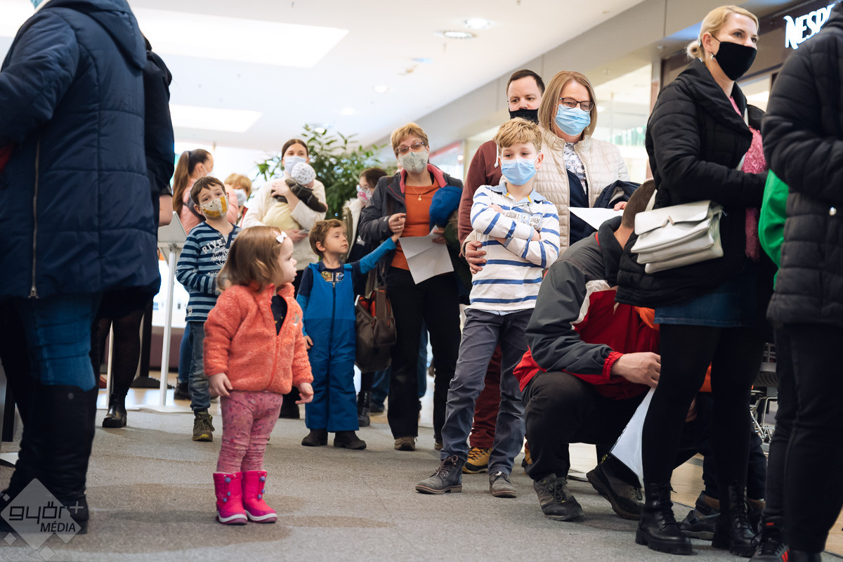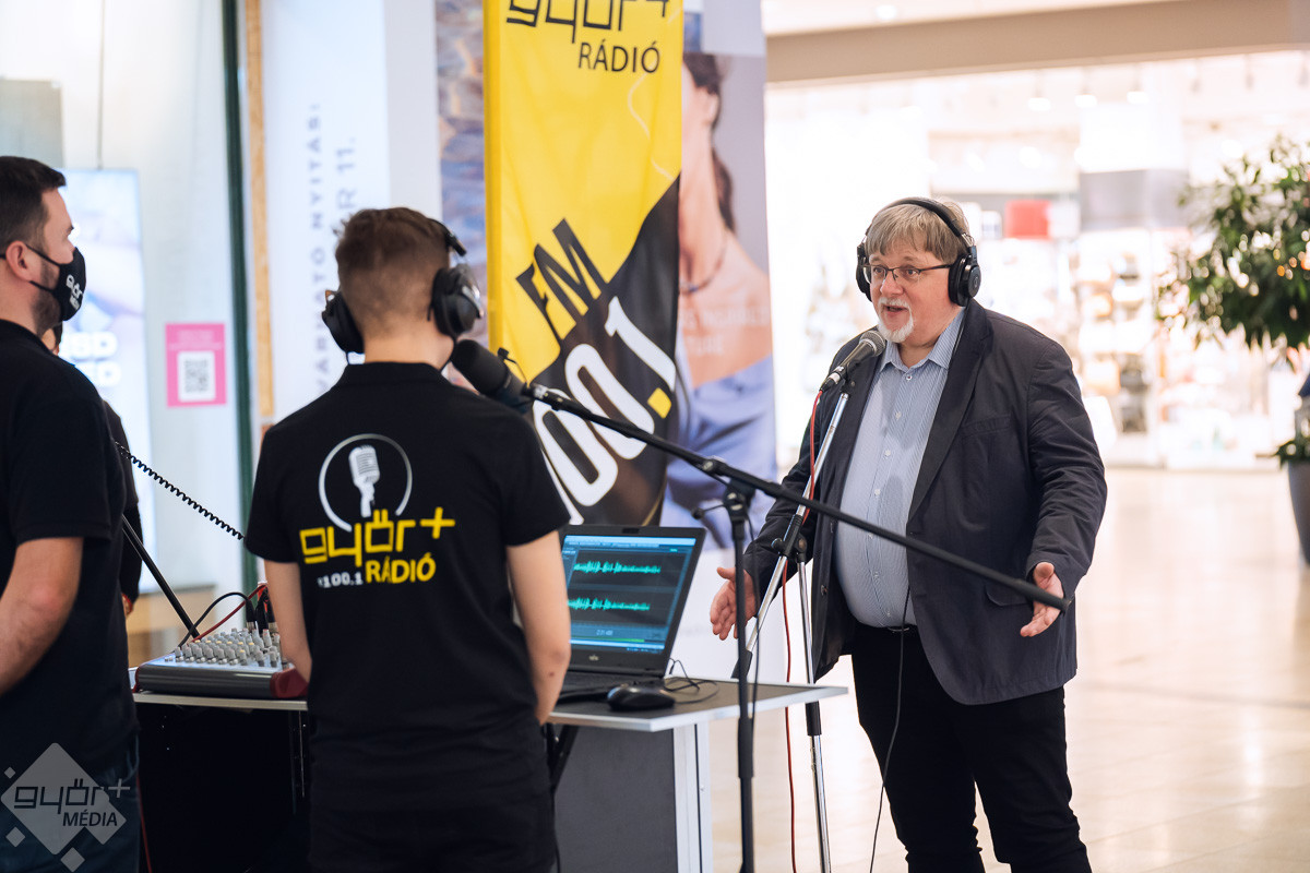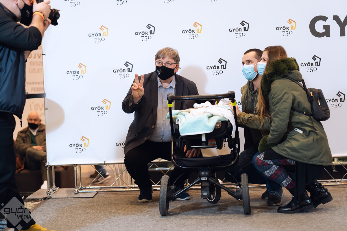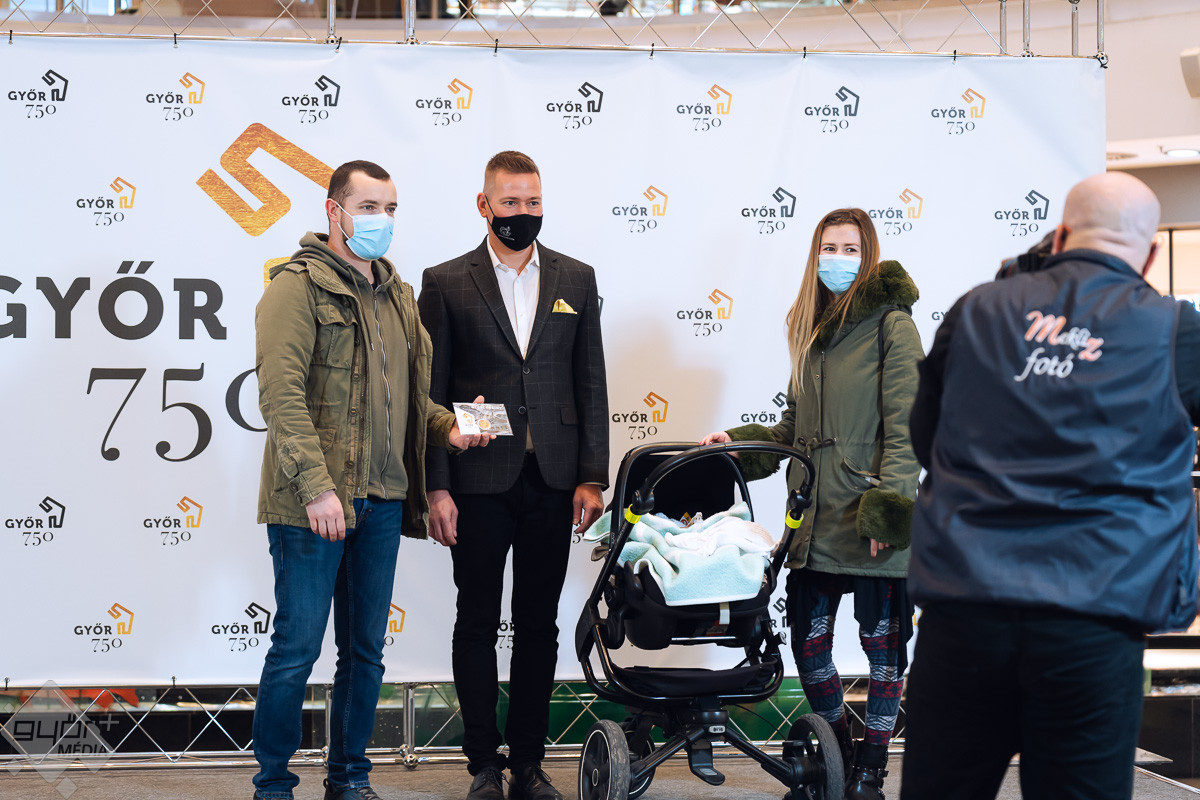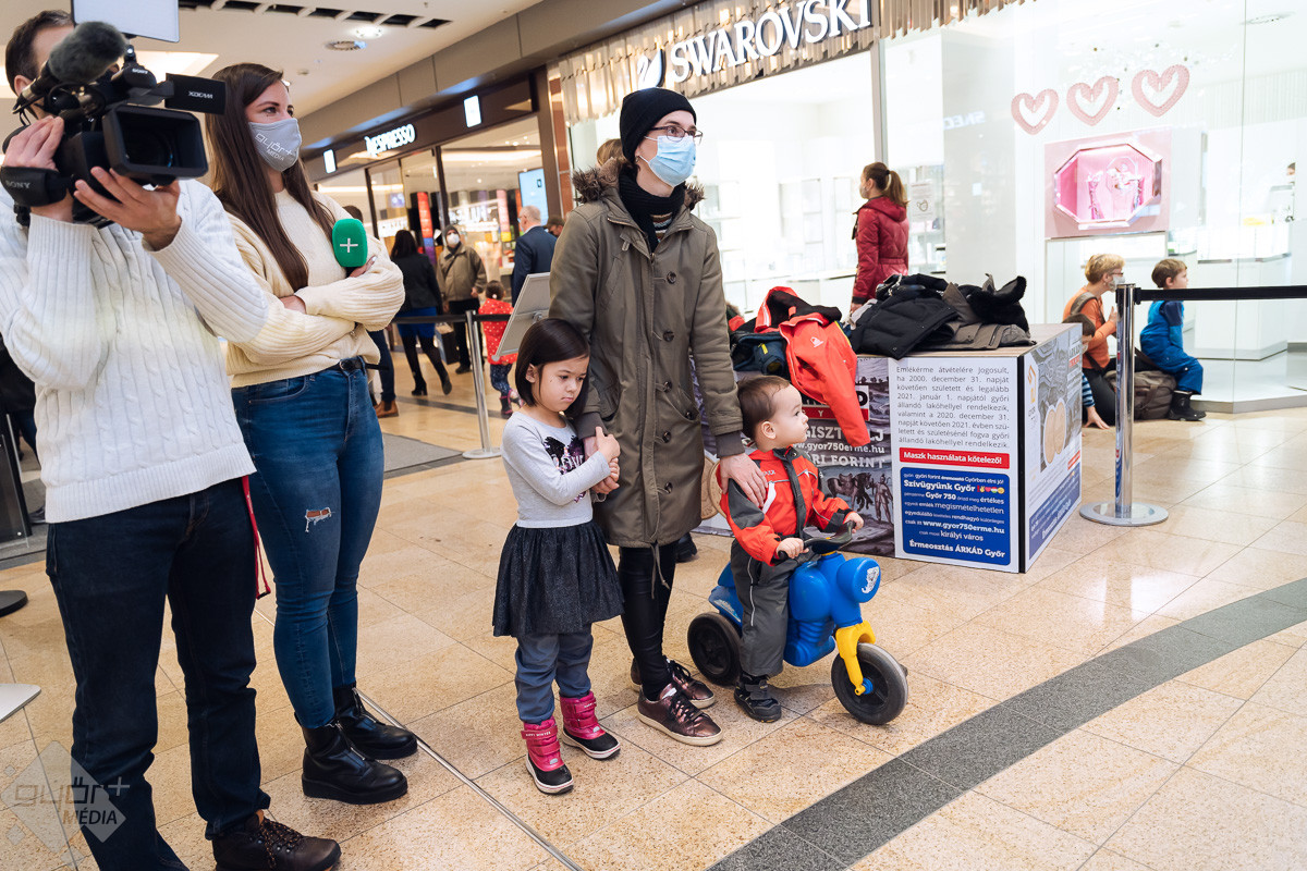 A mostani új környezet az Árkád Győr szökőkútjai mellett található. Itt egy két oldalról megközelíthető, profi színpadot állítottak fel. Ide várják a kicsiket és a nagyokat is, akikből akadt bőven, ezúttal több egy év alatti csöppség is átvette az ajándékot. Csütörtök délután ismét Dr. Dézsi Csaba András, a város első embere várta az érmére jogosultakat, társa pedig ezúttal Radnóti Ákos, alpolgármester volt.
