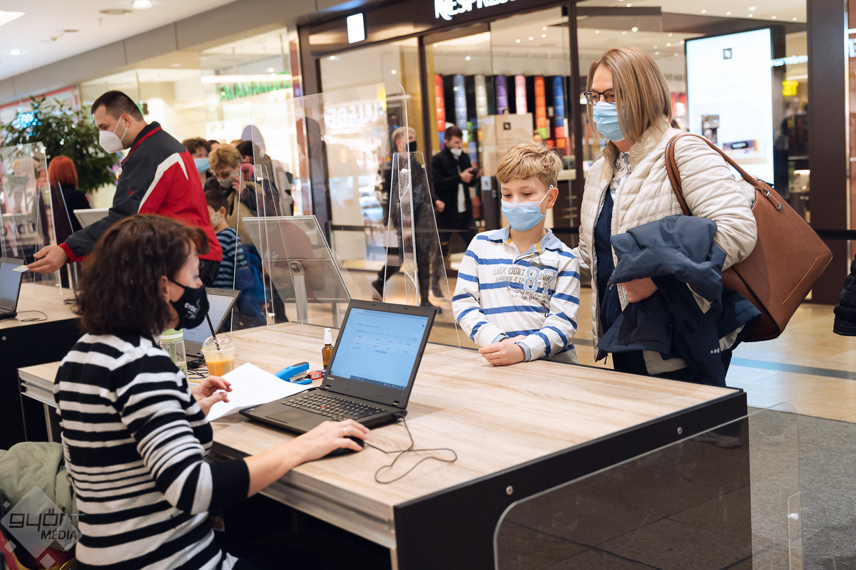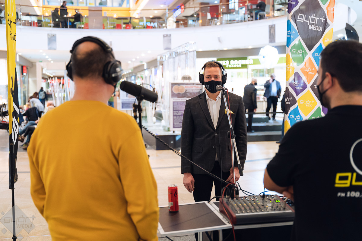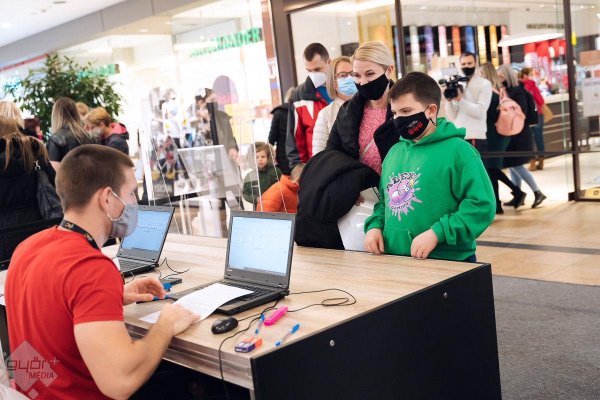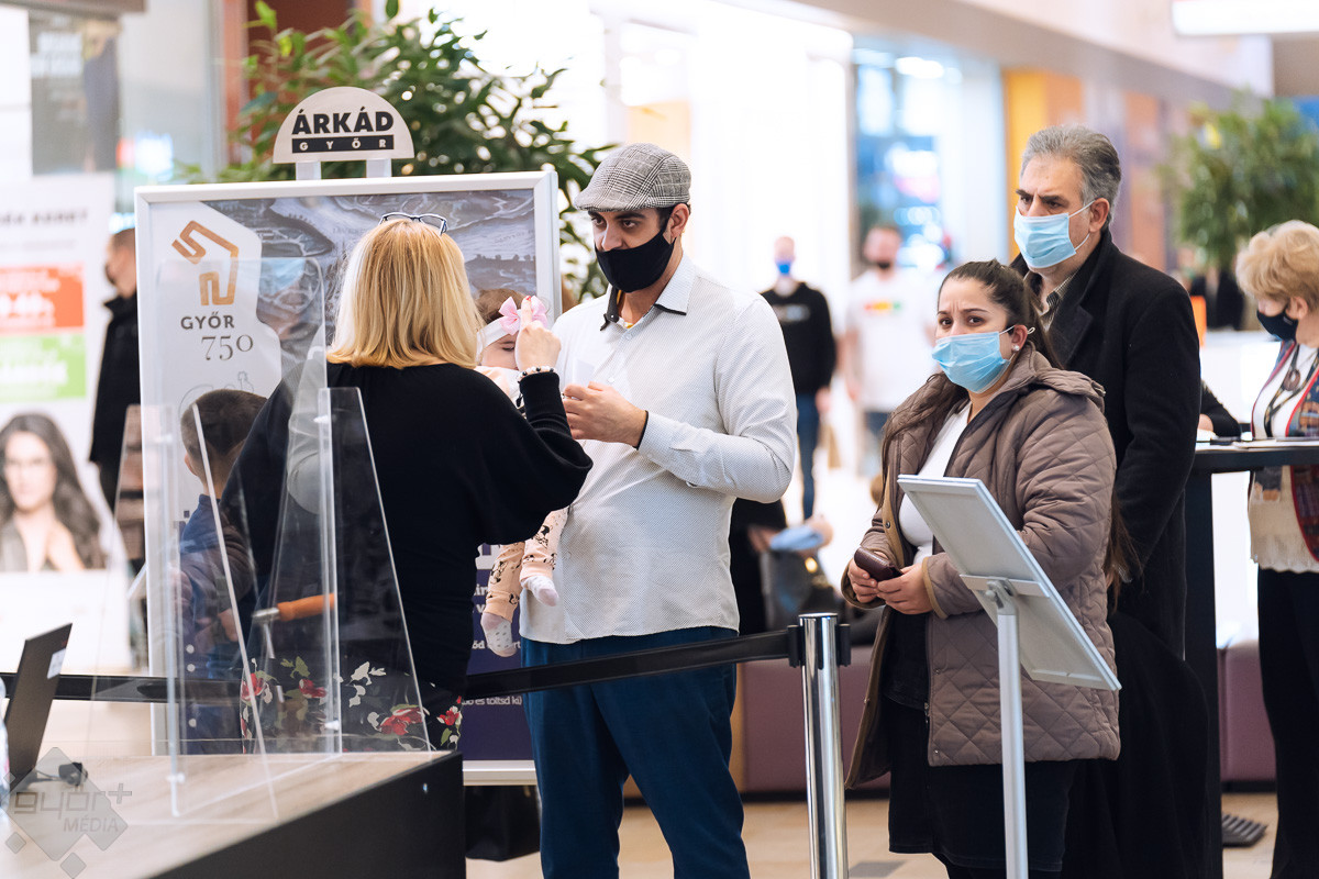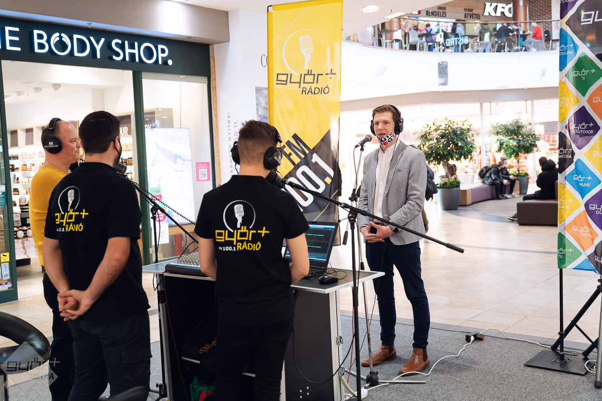 A mostani új környezet az Árkád Győr szökőkútjai mellett található. Itt egy két oldalról megközelíthető, profi színpadot állítottak fel. Ide várják a kicsiket és a nagyokat is, akikből akadt bőven, ezúttal több egy év alatti csöppség is átvette az ajándékot. Csütörtök délután ismét Dr. Dézsi Csaba András, a város első embere várta az érmére jogosultakat, társa pedig ezúttal Radnóti Ákos, alpolgármester volt.