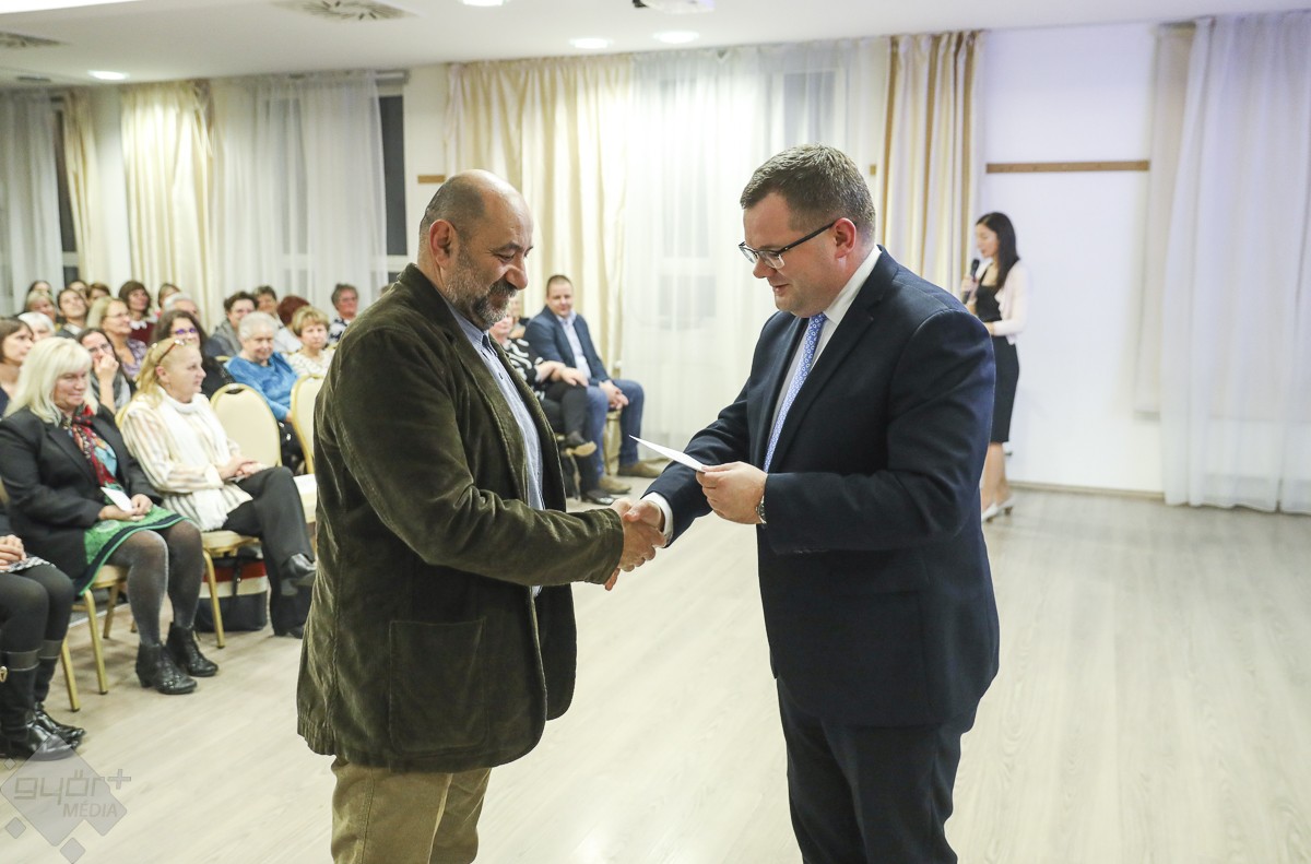 „2019-ben már 108 kolléga dolgozik 10 telephelyen. Győrben odafigyelnek azokra, akiknek a segítségre szükségük van, ezt mutatja a telephelyek, a létszám és a feladatok bővülése is” – emelte ki a szerdai ünnepségen köszöntőjében dr. Fekete Dávid alpolgármester, aki Győr város ezüst emlékérmét adományozta a központnak, és köszönetet mondott a volt és jelenlegi dolgozóknak az elmúlt három évtizedben végzett áldozatos, segítő munkájukért.
