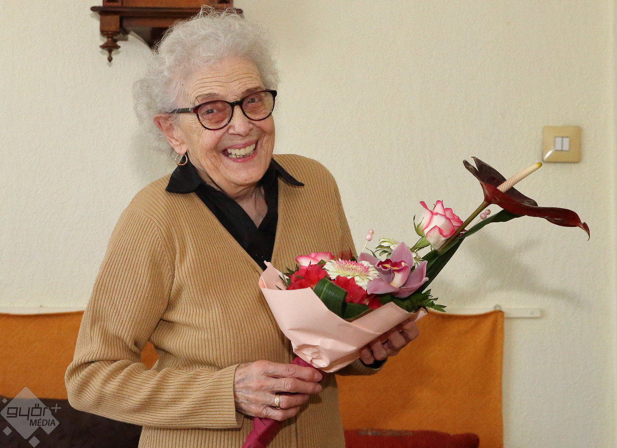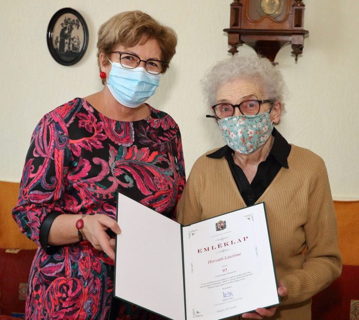 Dr. Pergel Elza, Győr város alpolgármestere köszöntötte, emléklappal, tortával és virággal lepte meg Horváth Lászlóné Editet, aki 95. születésnapját ünnepelte.