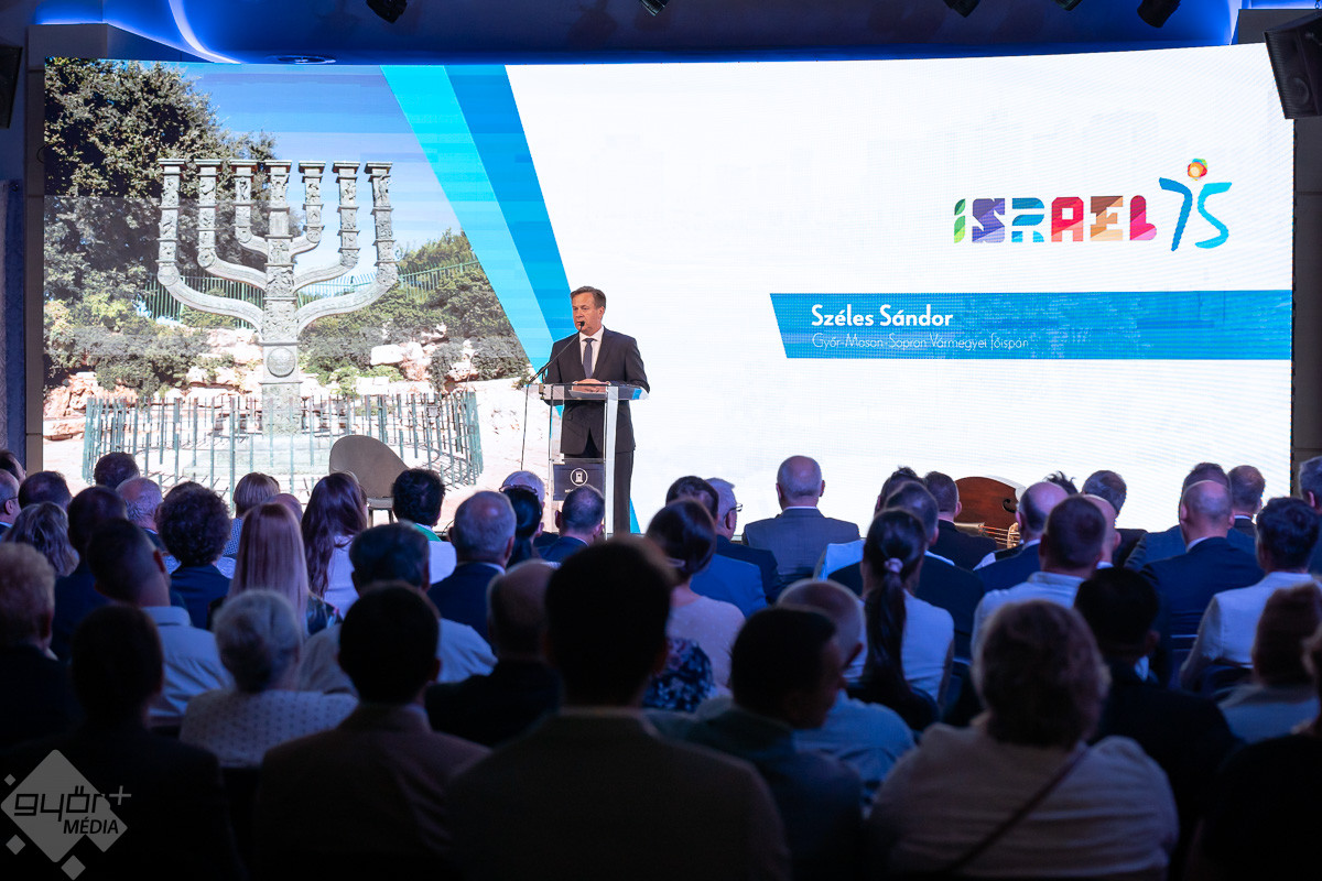 Széles Sándor, a vármegye főispánja arról beszélt, hogy míg egy ember életében általában az aktív életének a végét jelenti a 75 éves kor, addig egy állam esetében ez szinte még gyermekkornak számít. Ám ebben az esetben ez nem így van, hiszen Izrael mögött már több mint háromezer év áll. A ma megélt békességben nehezen tudjuk értékelni azt a küzdelmet, amit az elmúlt 75 évben megharcoltak a társadalom építésében, a kultúra megőrzésében, a gazdaság fejlesztésében, az oktatásban és a kutatásban. Mindezt állandó feszültségben és ellenséges környezetben. Ám az ország életében értékmérő a minőség, mely szinte minden téren tetten érhető.