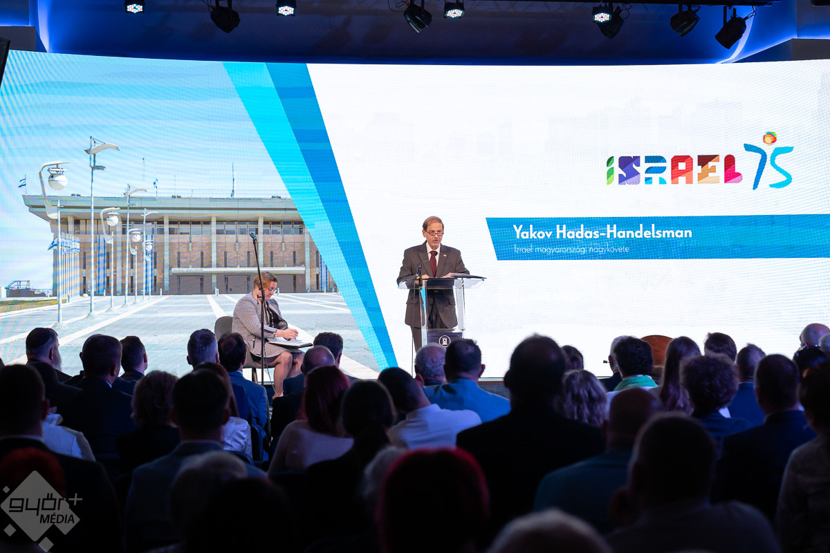 Az ünnepségen beszédet mondott a zsidó állam magyarországi nagykövete. Yakov Hadas-Handelsman szólt arról, hogy a 75 éves jubileum mellett az elmúlt hetekben ünnepelték fővárosuk, Jeruzsálem újraegyesítését. A zsidó nép örök fővárosa vallásilag is a legszentebb számukra, ugyanakkor másik két monoteista vallásnak, a kereszténységnek és az iszlámnak is szent helye. A három vallás hívei közösen és szabadon gyakorolhatják hitüket. Ez a szép ünnep nem jöhetett volna létre azok nélkül, akik ezért az életüket áldozták.