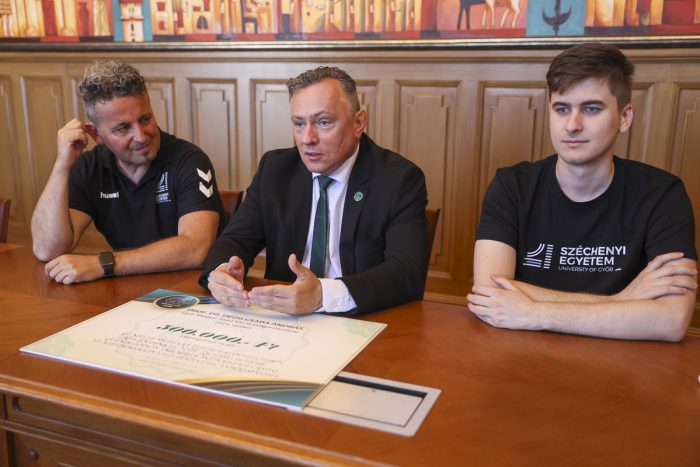„Sok szempontból üzenetértéke van ennek a támogatásnak. A város próbál minden újszerű kezdeményezést felkarolni, most egy olyan világhírű játék kapcsán, melynek győri képviselői viszik a város jó hírét. Az egyetemmel való együttműködésünknek számos formája van, de azért is erős a városunk mert a különböző intézmények összefogva, közösen dolgoznak a sikerekért. Reméljük, hogy trófeával érkeznek haza a játékosok” – biztatta a versenyzőket Szeles Szabolcs, majd az alpolgármester a támogatást jelképező emléktáblát is átnyújtotta a Bisinger-teremben rendezett csütörtöki találkozón.