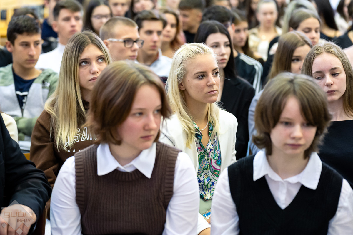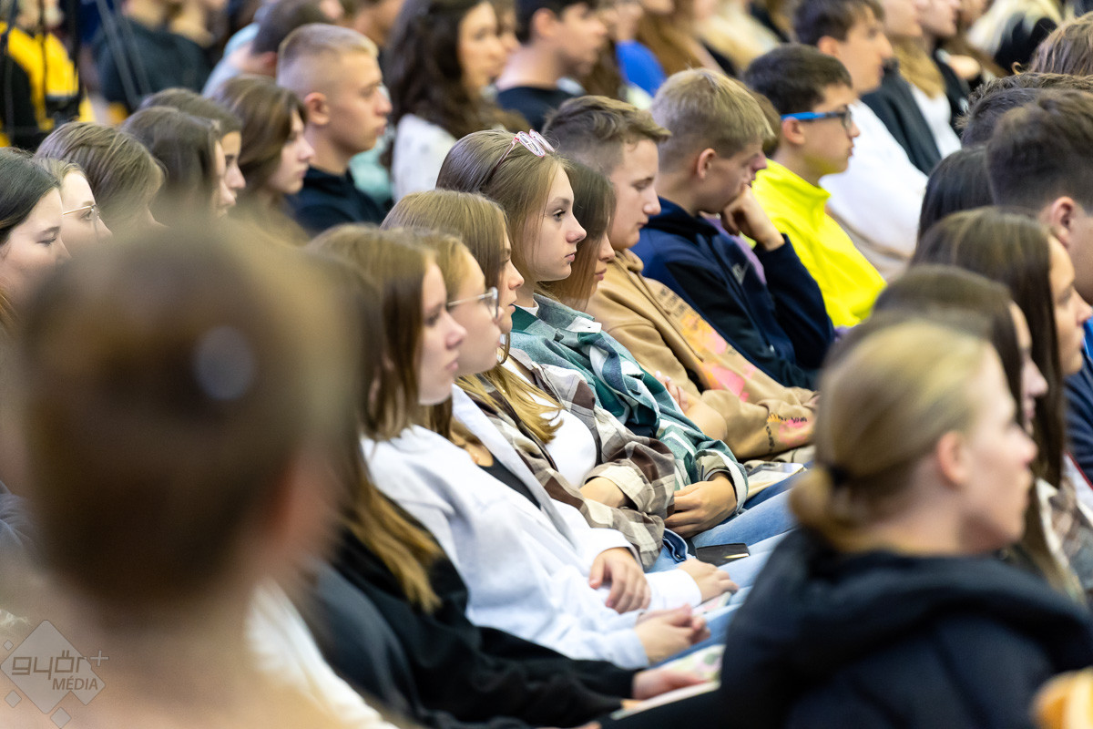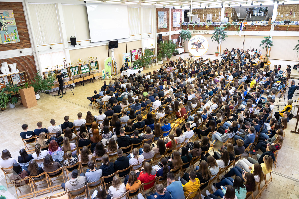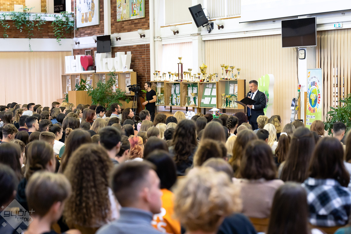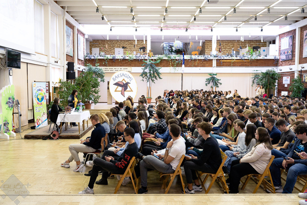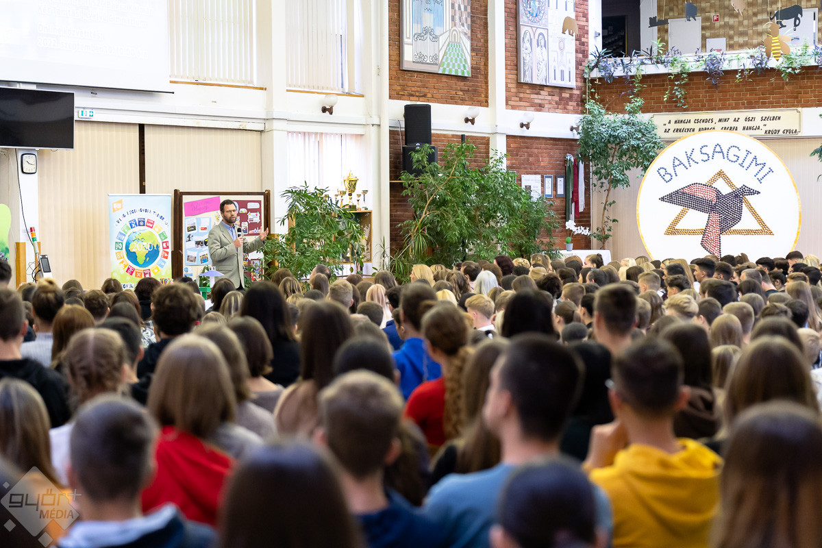 400 baksás diák töltötte meg teljesen az iskola auláját, a résztvevők azonban egyszerre három rendezvényen is ott voltak ez által. Hiszen, mint kiderült a program egyrészt a Győri Klíma expo nyitója volt, másrészt az Európai Fenntarthatósági Hét egyik eleme is, ráadásul a Világ Legnagyobb tanórája is a győri suliban startolt el. Az iskola igazgatója szerint a Baksának komoly zöld küldetése van.