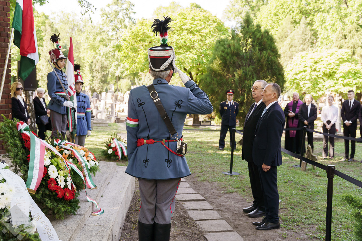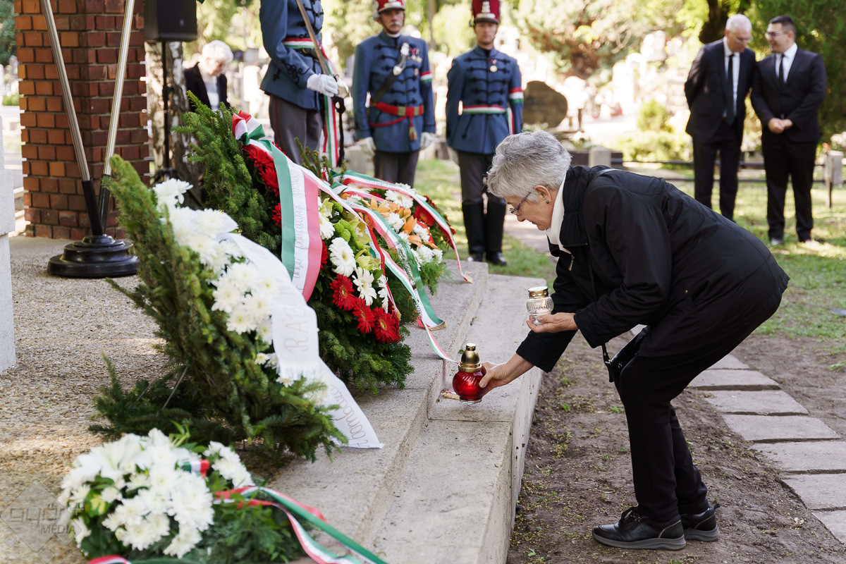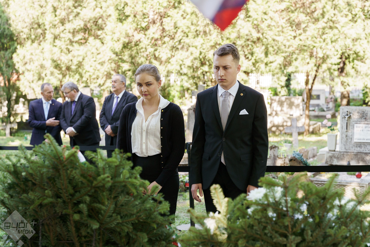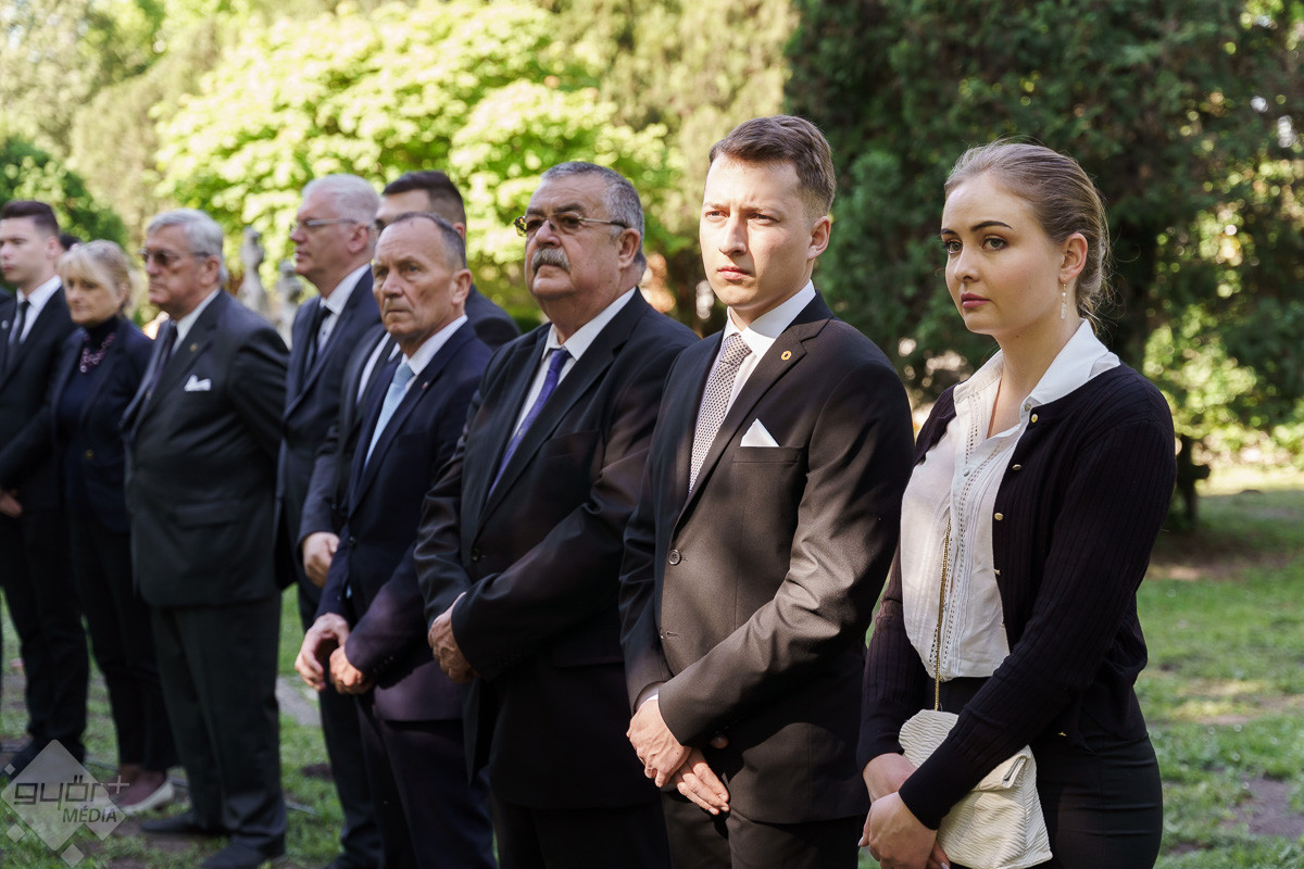 Az esemény végén az emlékműnél a város képviselői, a civil szervezetek, fegyveres testületek és a Rómer Flóris Múzeum vezetői helyezték el az emlékezés virágait.