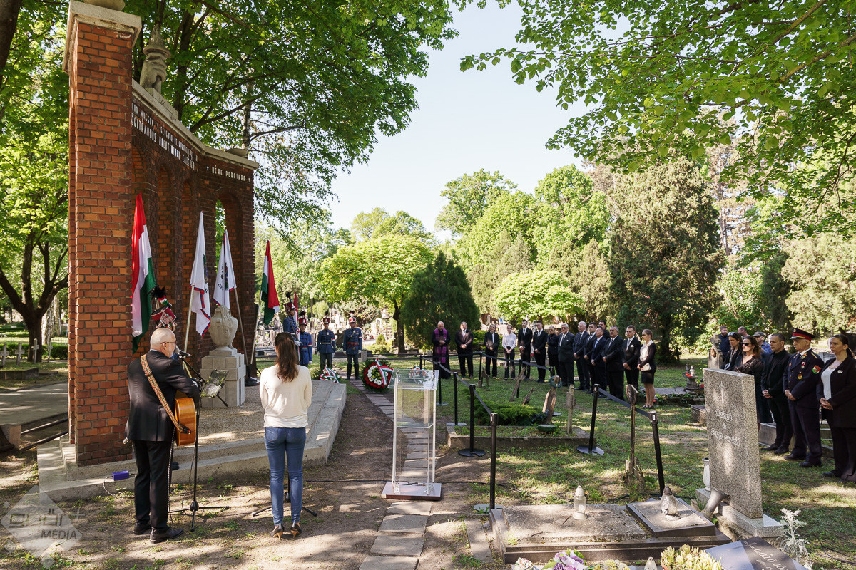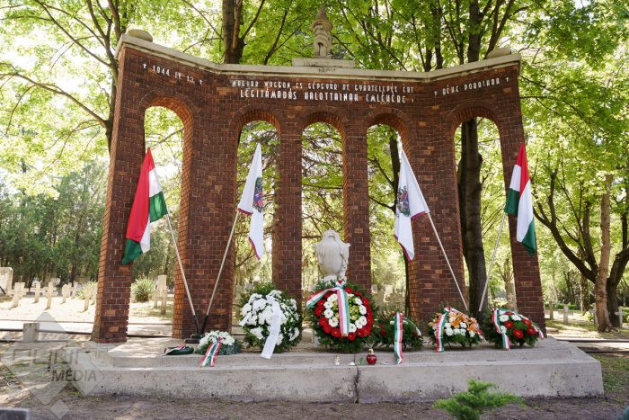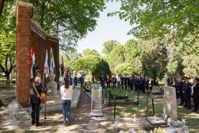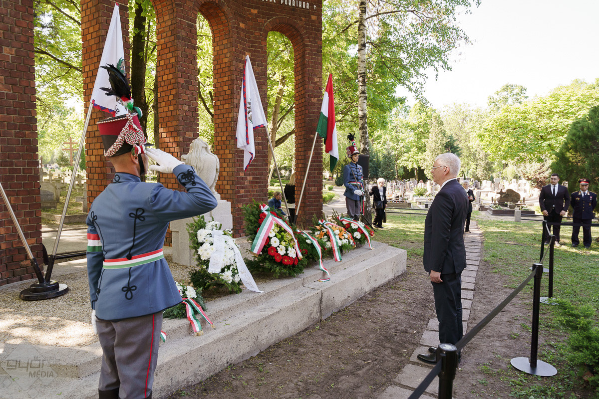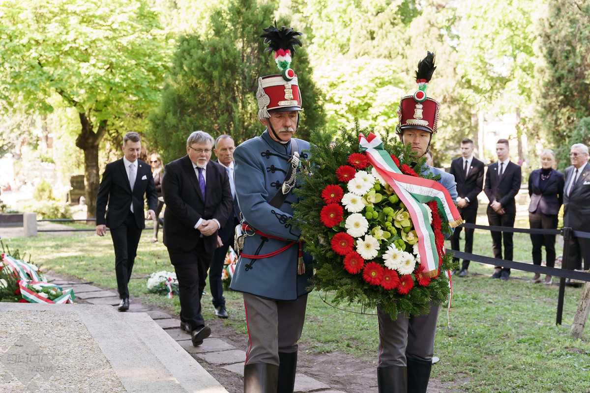 Az esemény végén az emlékműnél a város képviselői, a civil szervezetek, fegyveres testületek és a Rómer Flóris Múzeum vezetői helyezték el az emlékezés virágait.