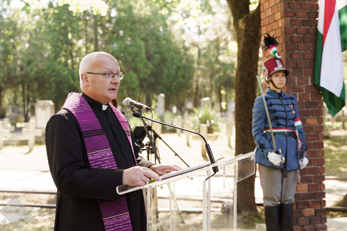 A városvezetőt dr. Reisner Ferenc, általános püspöki helynök, a Brenner János Hittudományi Főiskola rektora követte, aki imádkozott a háborúban elhunyt testvéreinkért. “Irgalmazz nekik és adj megnyugvást örök országodban. Kegyelmedbe ajánljuk őket Urunk, Istenünk, ismerd el őket teremtményeidet hozzátartozónak, ne emlékezz vétkeikre, melyeket a meggondolatlanság zavarában vagy rossz kívánságok hevületében követtek el” – fohászkodott a püspök.