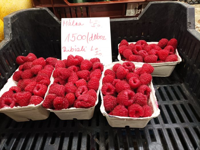 Magyar málnát pedig egyáltalán hiába is keresünk a csarnokban. Stábunk egy kereskedőnél talált lengyel málnát, amit kis dobozban, 1500 forintért lehet beszerezni, de a magyar málna szinte egész nyáron hiánycikk volt. „Az elmúlt hetekben egyszer-egyszer lehetett ugyan kapni, de a magyar málna idei szezonja nagyjából kimaradt, legfeljebb import málnát lehet kapni, de abból sincs túl sok” – hangsúlyozta a piac egyik üde színfoltja.