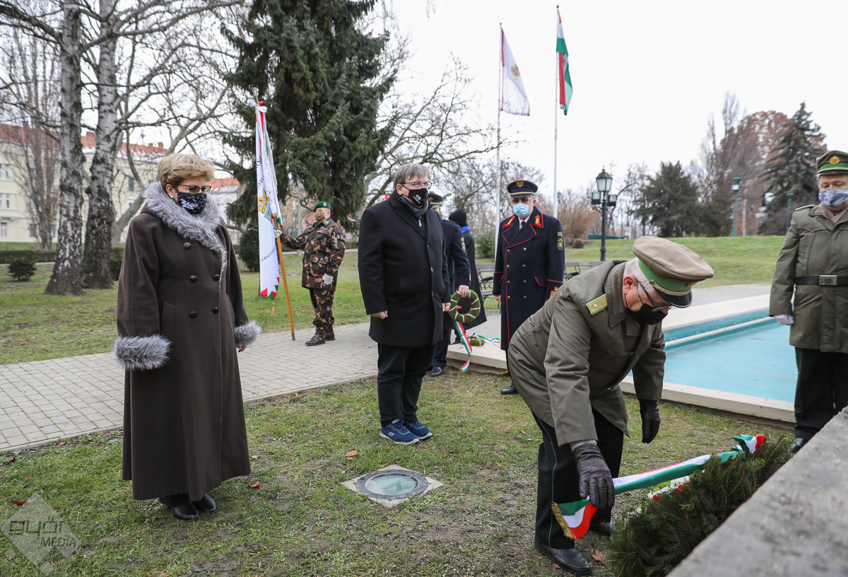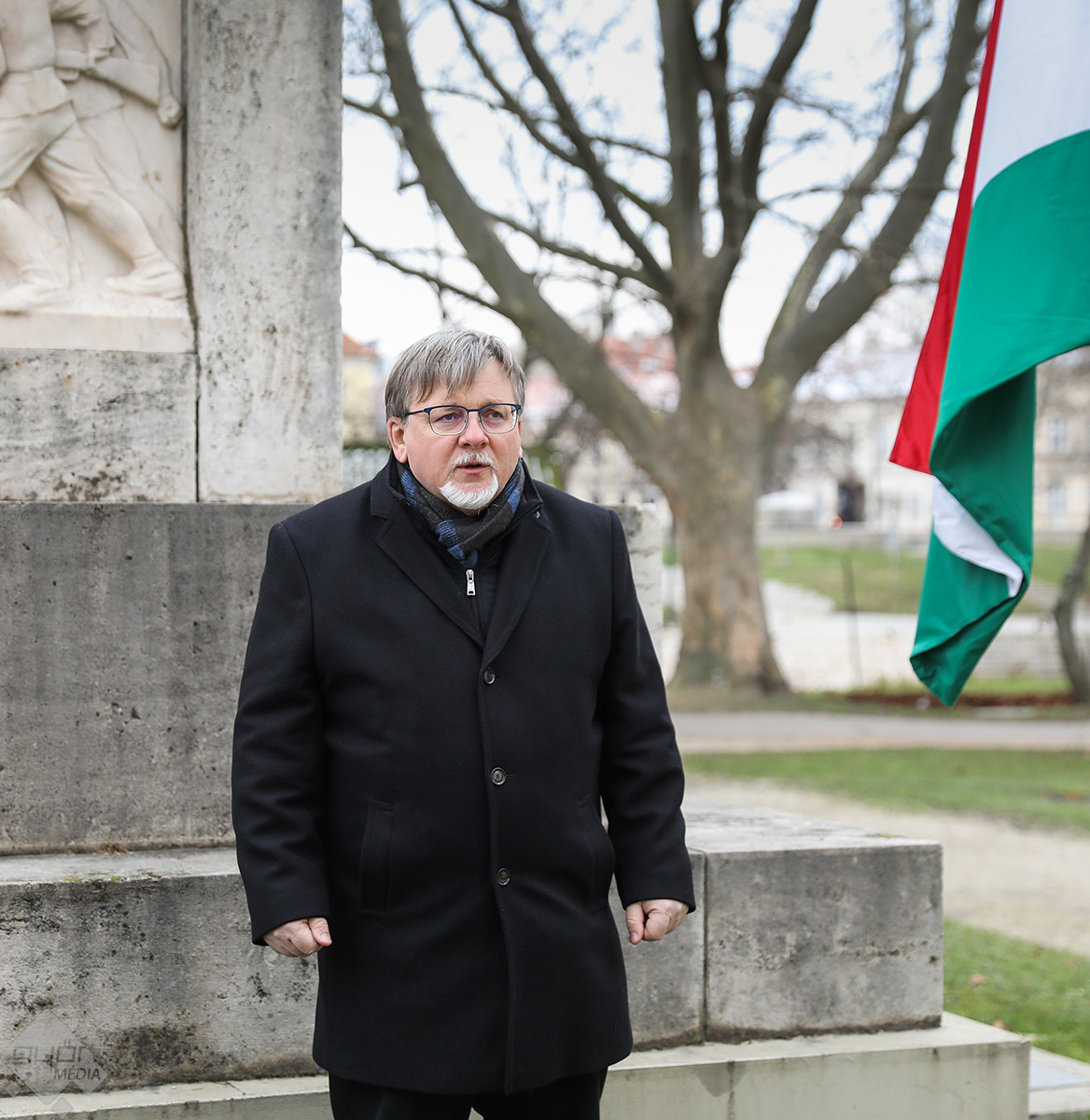 Ma azért állunk itt, hogy lerójuk kegyeletünket, kifejezzük tiszteletünket és ne engedjük feledésbe merülni azokat, akik a metsző hidegben, hazájuktól és családjuktól távol vesztették életüket.”
