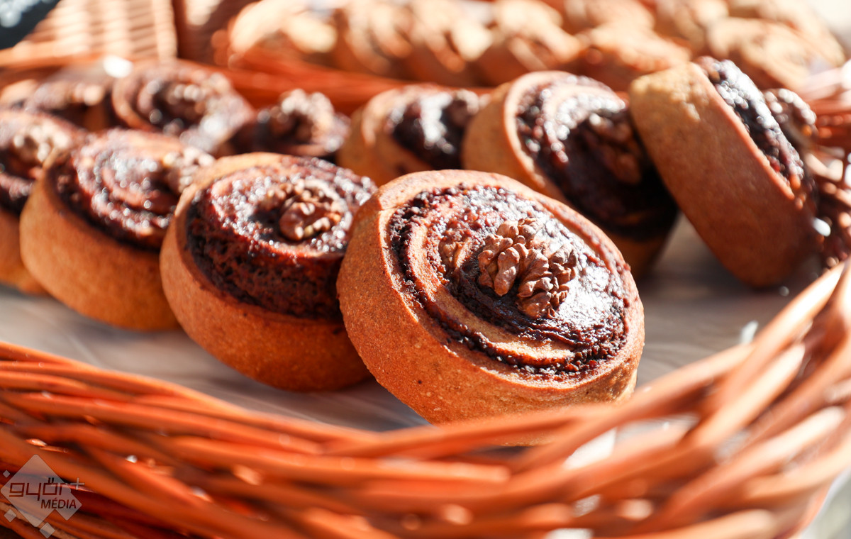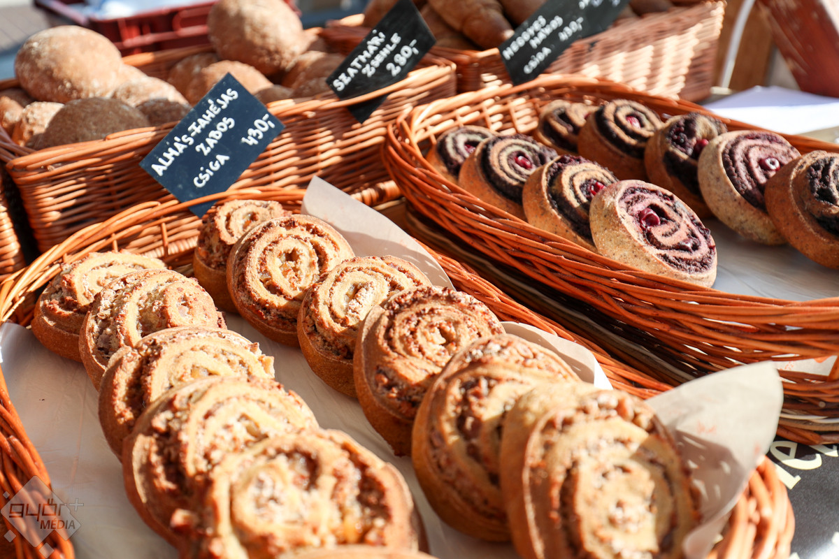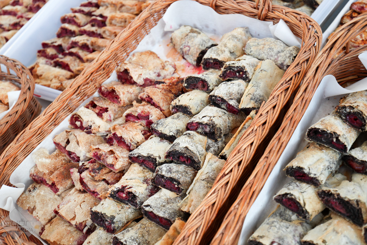 Válogathattunk a kézzel nyújtott rétes kínálatból is, a kapros túróstól, a káposztáson át a meggyes mákosig. Voltak egészséges sütik, amelyek zabpehellyel készültek, mint a kókuszcsók, vagy a gluténmentes spenótos-sajtos, vagy almás-fahéjas csiga. A mézeskalácsok, a kürtőskalácsok és a rábaközi perec is kelendő volt.