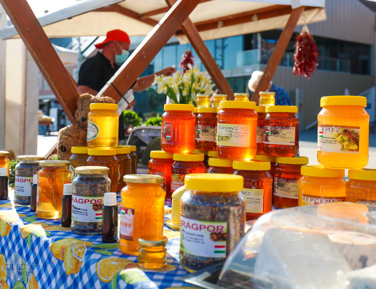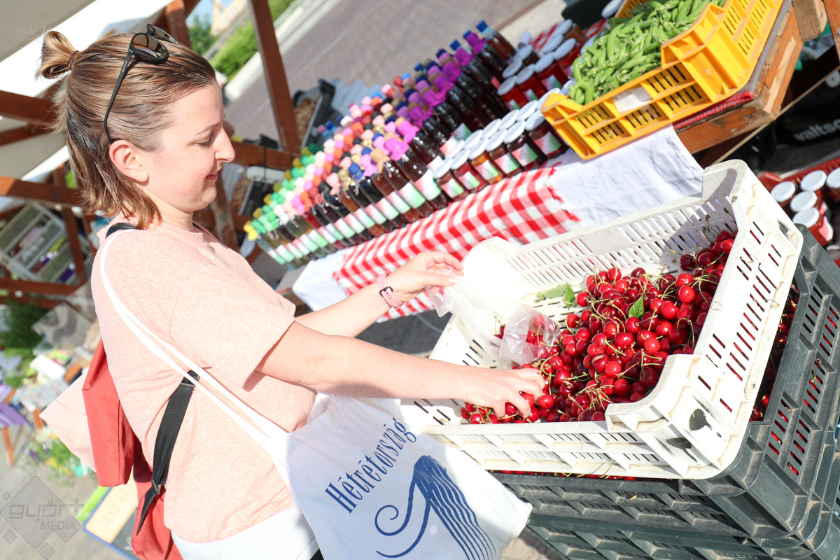 A „Védd a helyit, vedd a kisalföldit” termelői vásár vasárnap 7 és 13 óra között várta az érdeklődőket, a közel félszáz standon a friss zöldség, gyümölcs és virágkínálat mellett, szörpöket, lekvárokat, füstölt árút, sajtokat, édességeket vásárolhattunk.