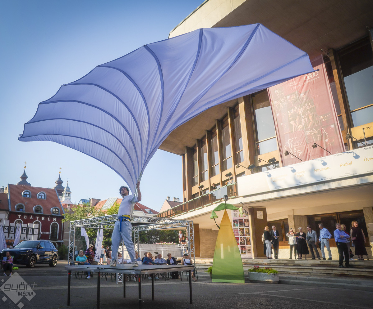 Az idei eseménysorozatot a házigazda, a Győri Balett Schubert „A halál és a lányka” című beavató táncszínházi előadása nyitotta meg, Dr. Farkas Levente András és a Győri Filharmonikus Zenekar közreműködésével, Teremi Dáriusz vezényletével. Szőllősi Krisztina koreográfus érzelmekkel teli mozdulatokkal mesélt az elfogadás és az elmúlás gondolatiságáról, hisz létezésünk legfontosabb kérdéseit már kisgyermekként megfogalmazzuk, de vajon megkapjuk-e rá a választ? Miután a Győri Balett küldetése a közönség utánpótlása, a fiatalok megszólítása, ezért is esett választásuk a narrátor szerepére felkért dr. Farkas Levente Andrásra, akit több százezren követnek a TikTokon. Az influenszer az előadás kiemelt pillanataiban különleges, visszafojtott hangján szólt a közönséghez, és arról mesélt, hogy az Isten által alkotott világban mit jelentett a létezéshez és az elmúláshoz fűződő viszony, és ennek harmóniája hogyan változott meg az évszázadok során, mit gondolunk erről most az anyagi, javakkal teli világunkban. Majd feltette a nagy kérdést: Isten vagy matematika? Az egyedi produkciót a Széchenyi István Egyetem Design Campus hallgatói által megálmodott látványvilága tette teljessé, az ünnepi estet álló vastaps kísérte.