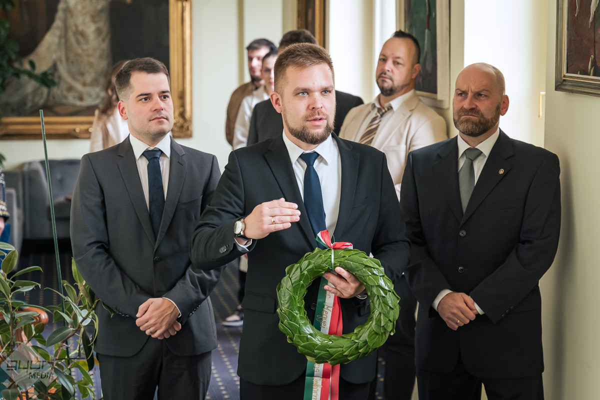 Az önkormányzat vezetői először a városházán, Szigethy Attila emléktáblájánál majd a Szent István út 5. számú épületnél, a Dunántúli Nemzeti Tanács egykori működési helyén koszorúztak.