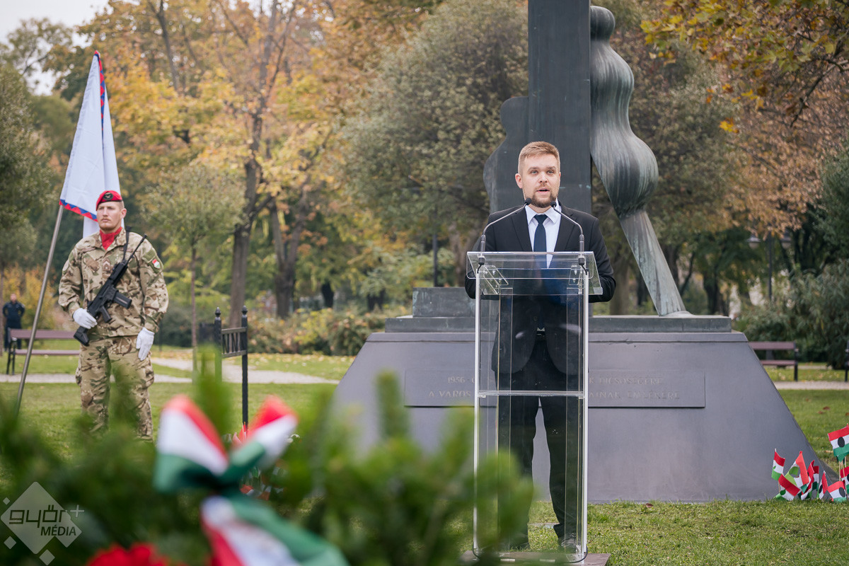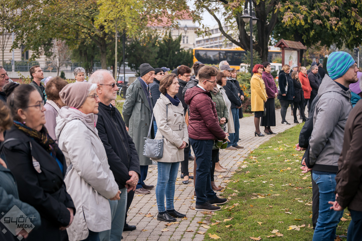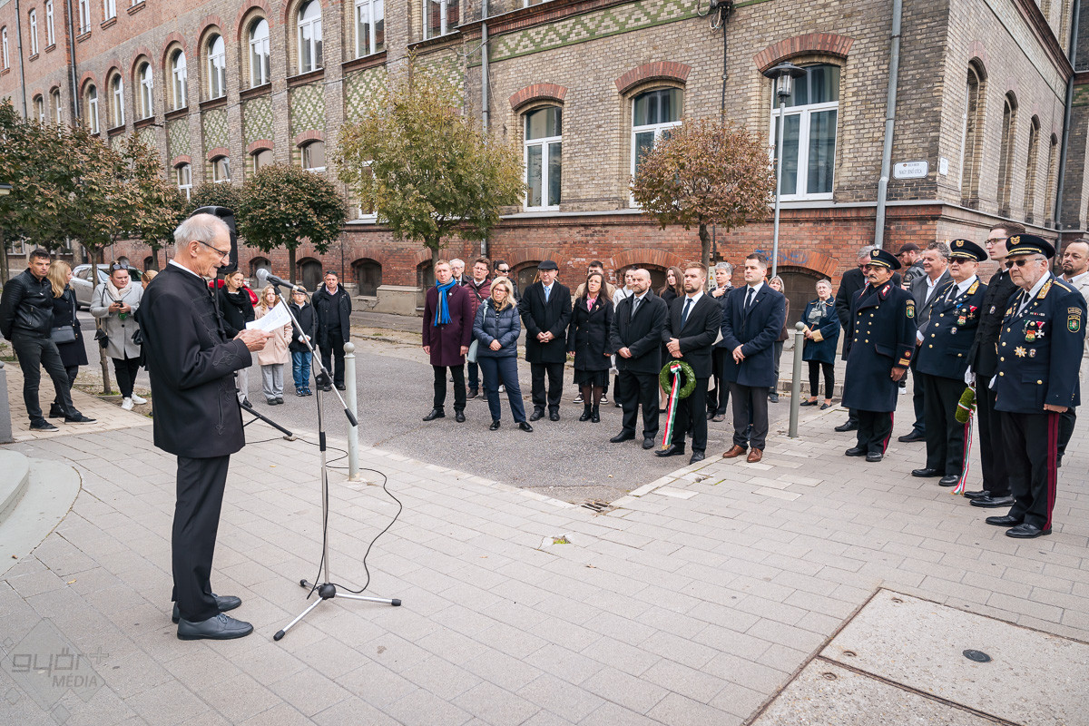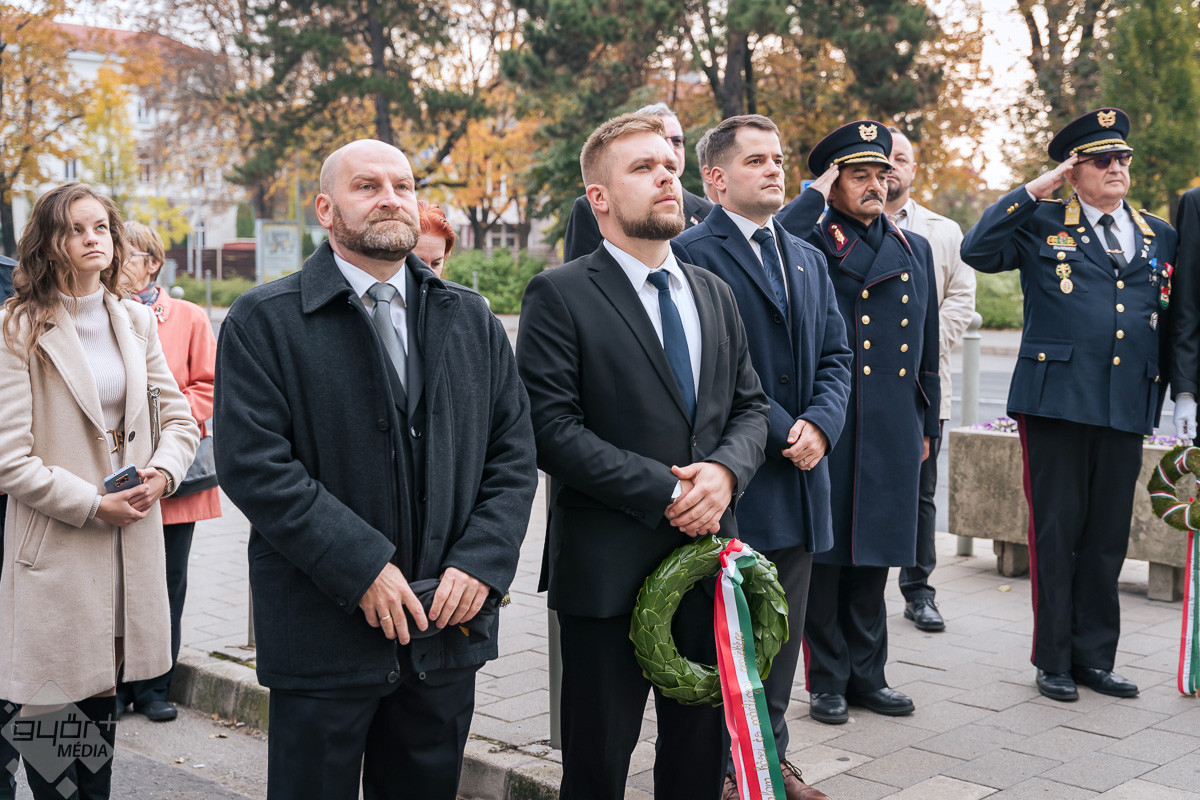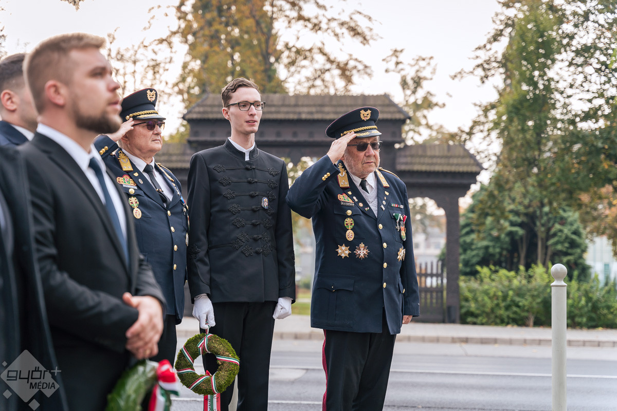 A megemlékezésre a Bisinger sétányon, a Golgota emlékműnél került sor, ahol Pintér Bence, Győr polgármestere mondott ünnepi beszédet, aki hangsúlyozta: amíg van, aki emlékszik 1956 hőseire, addig haláluk nem volt hiábavaló. A forradalom lángja sosem aludt ki, nem tiporható el.