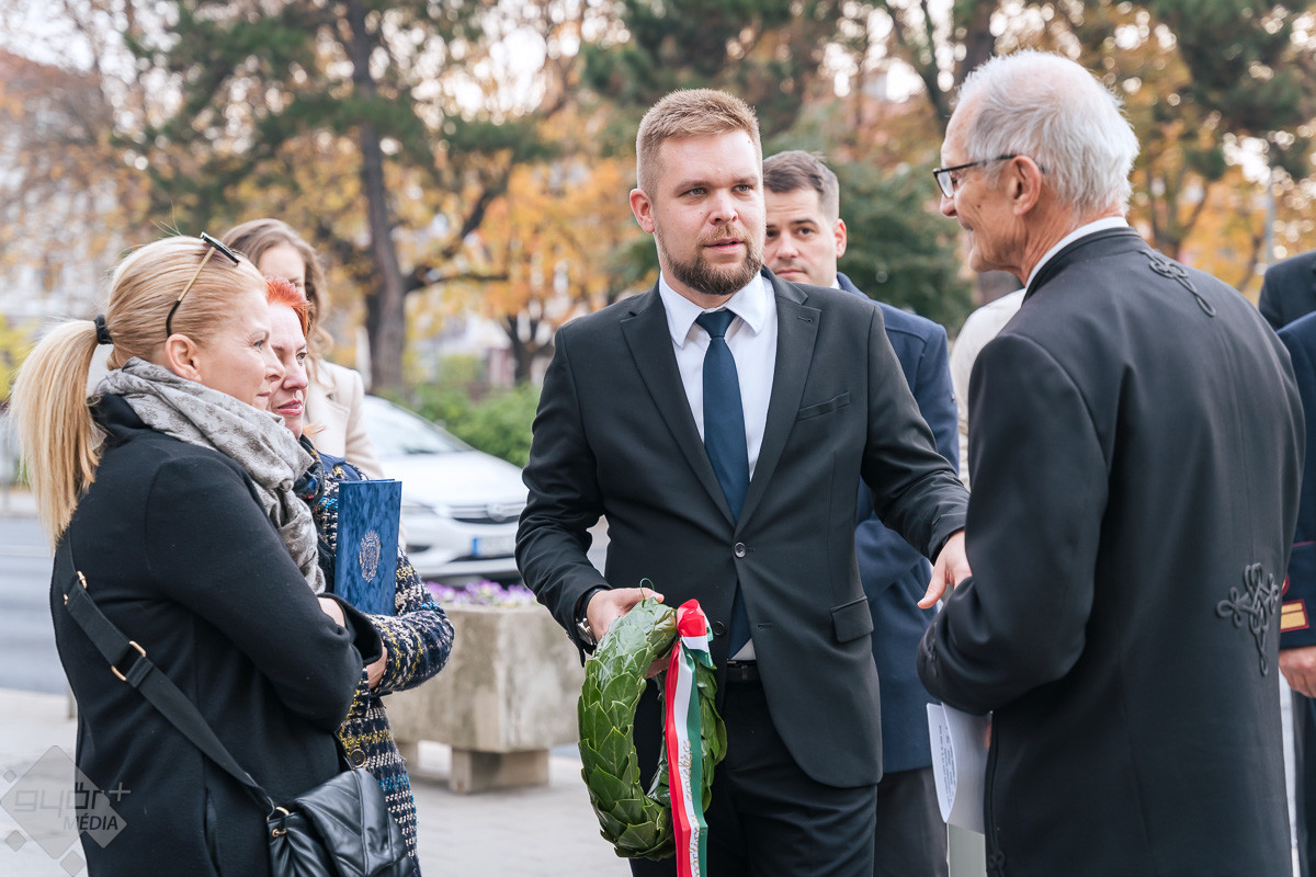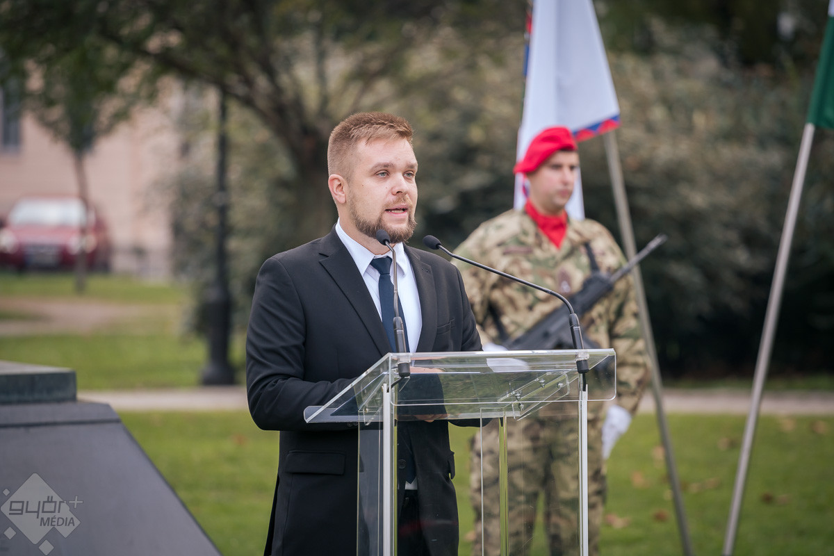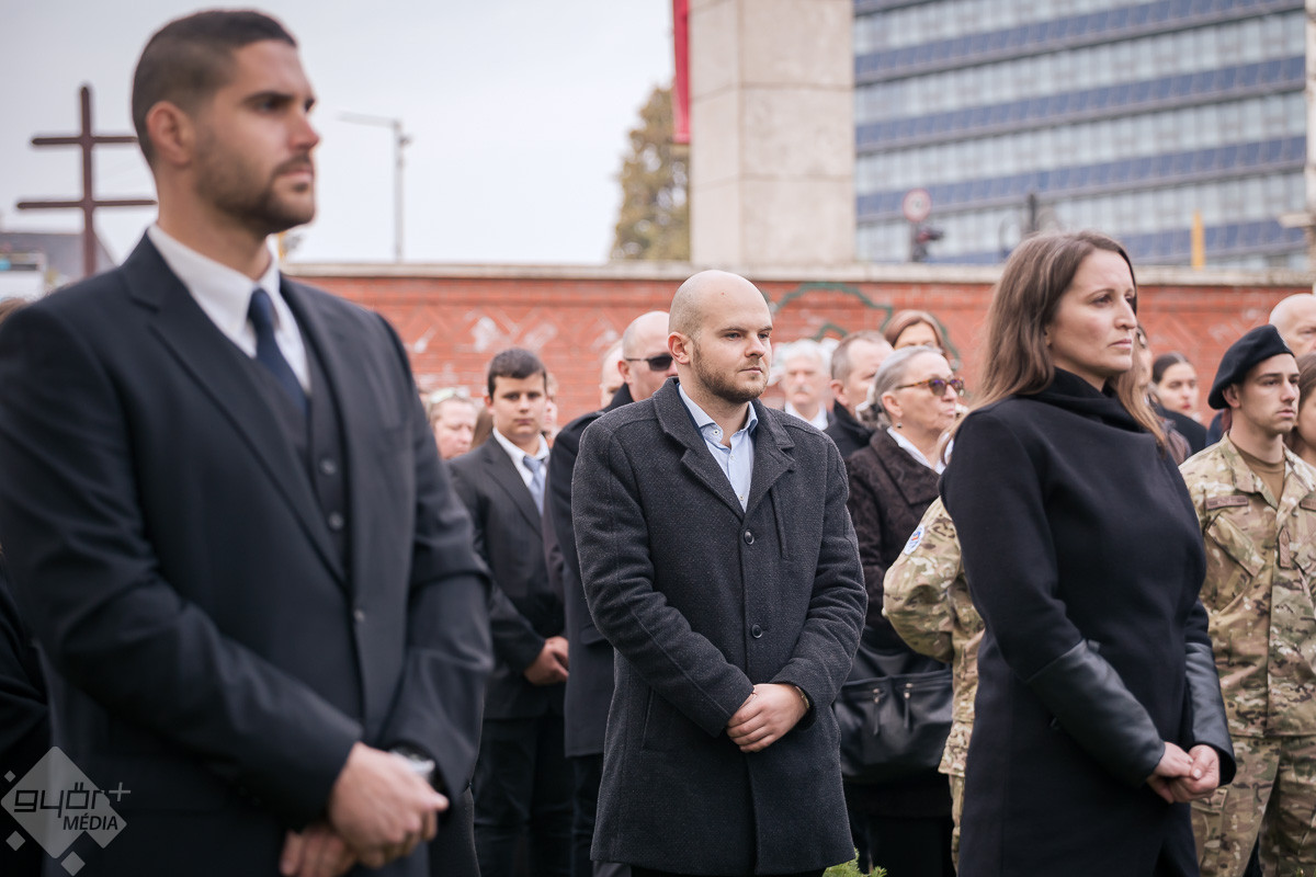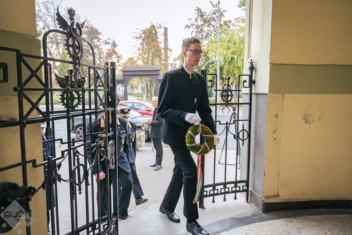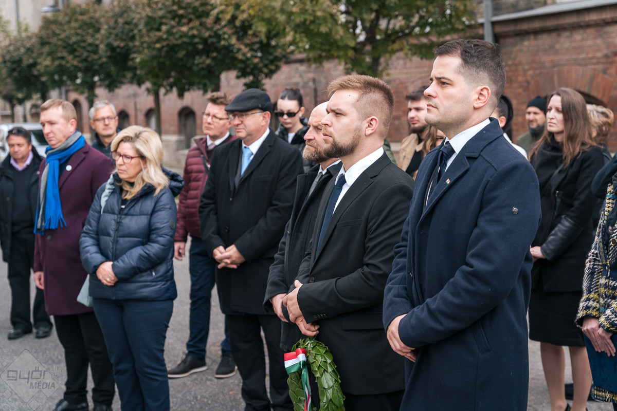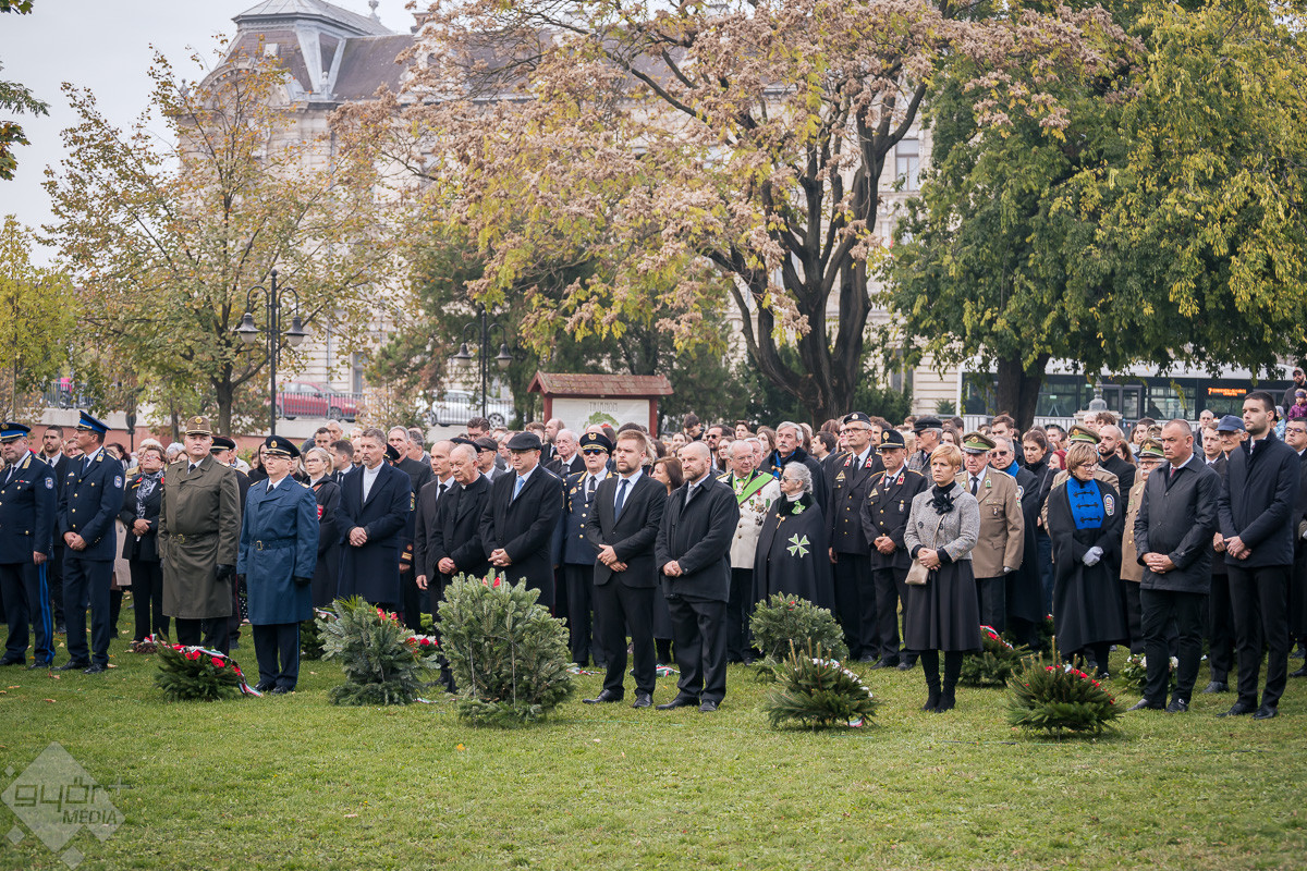 A megemlékezésre a Bisinger sétányon, a Golgota emlékműnél került sor, ahol Pintér Bence, Győr polgármestere mondott ünnepi beszédet, aki hangsúlyozta: amíg van, aki emlékszik 1956 hőseire, addig haláluk nem volt hiábavaló. A forradalom lángja sosem aludt ki, nem tiporható el.