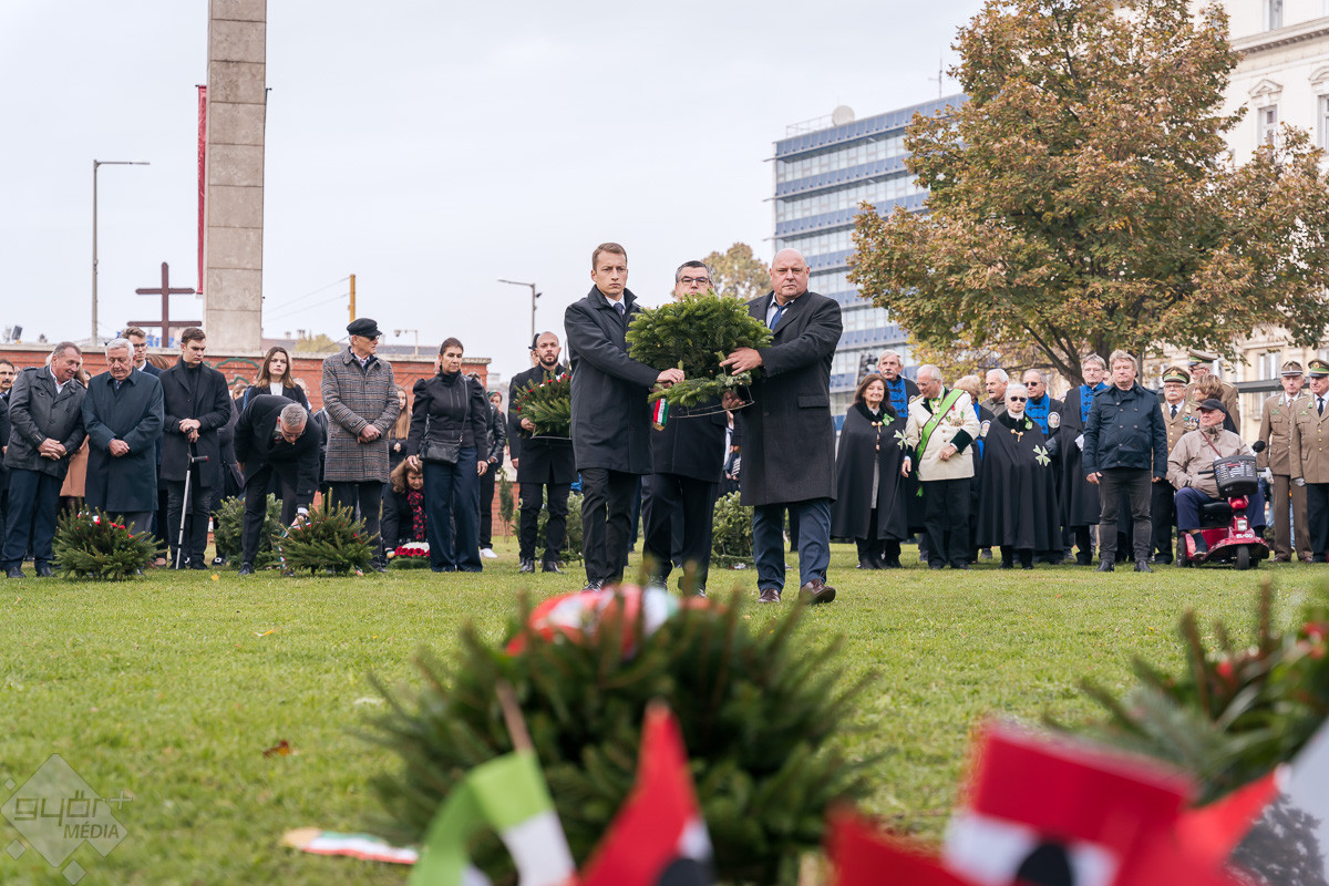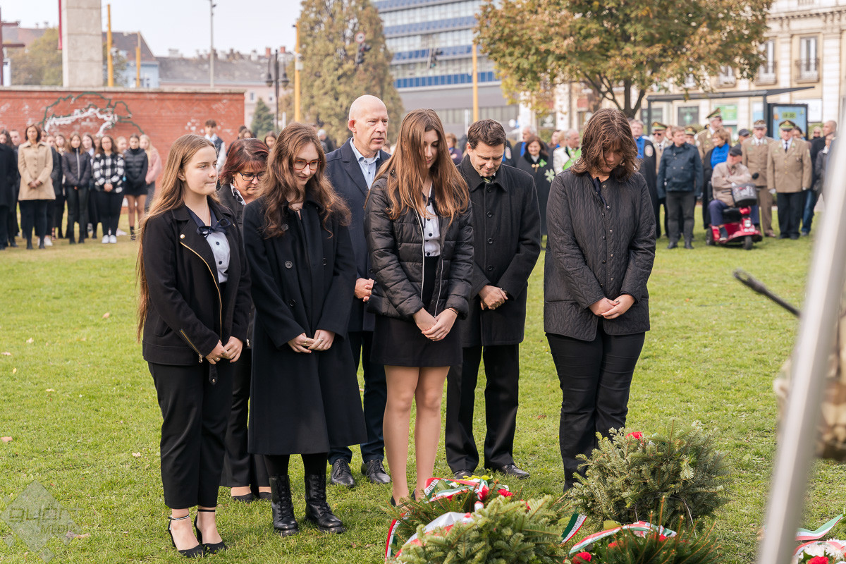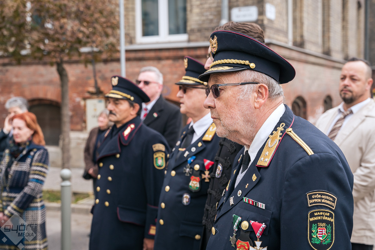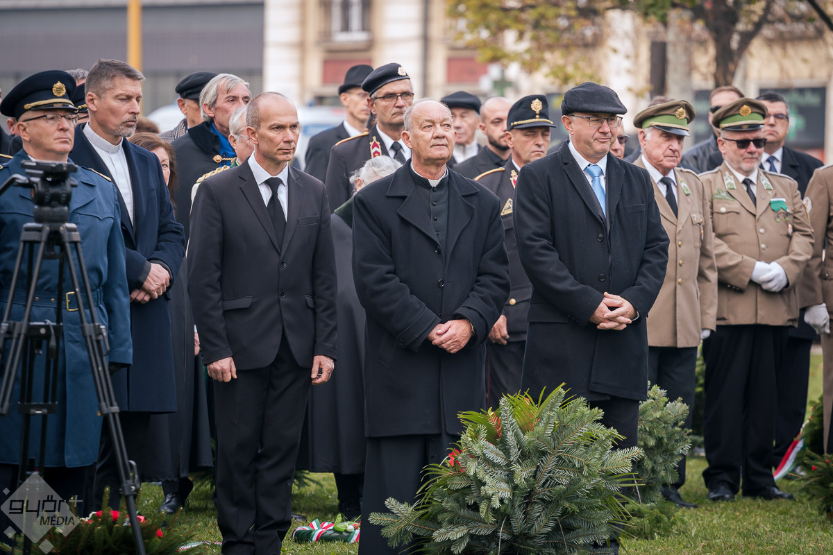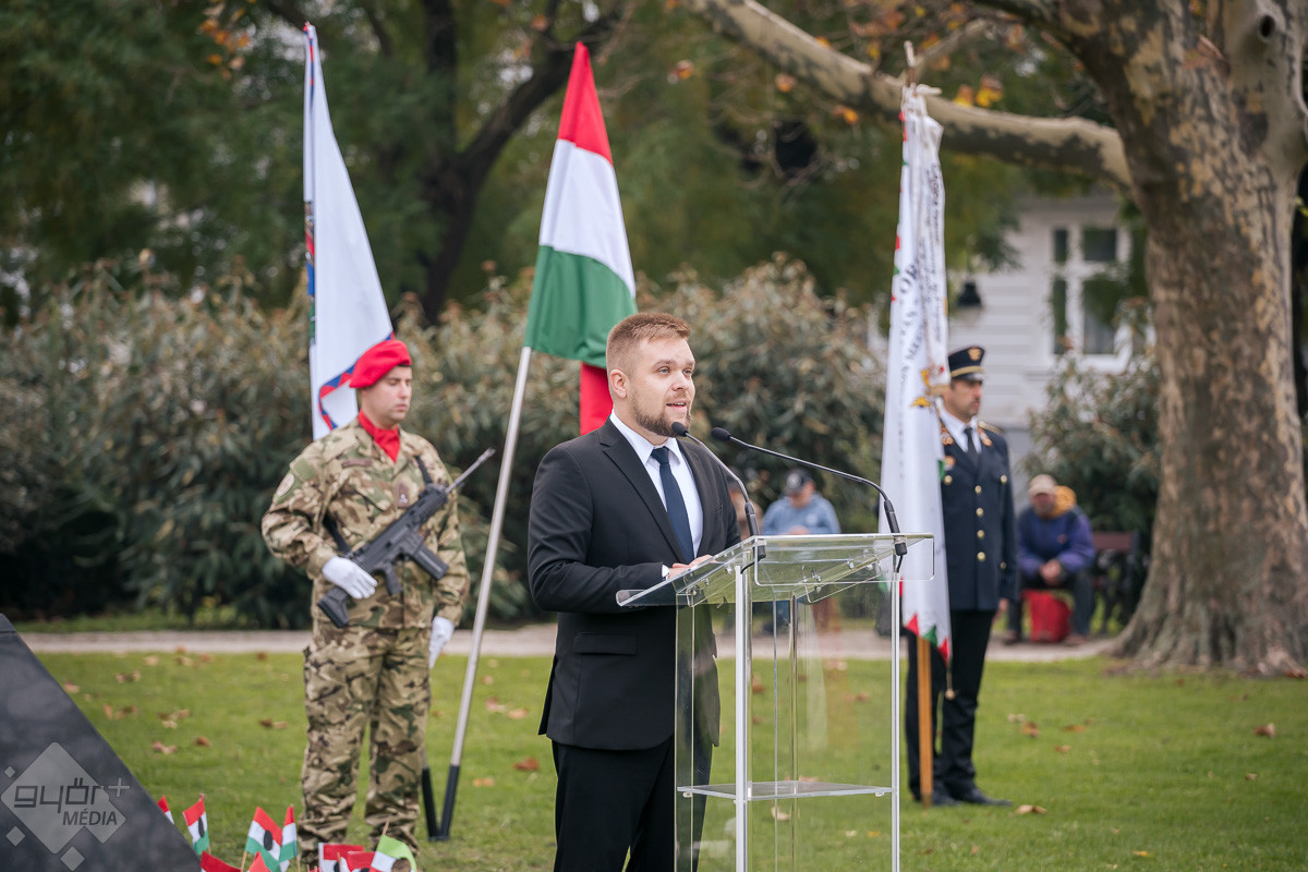 A megemlékezésre a Bisinger sétányon, a Golgota emlékműnél került sor, ahol Pintér Bence, Győr polgármestere mondott ünnepi beszédet, aki hangsúlyozta: amíg van, aki emlékszik 1956 hőseire, addig haláluk nem volt hiábavaló. A forradalom lángja sosem aludt ki, nem tiporható el.