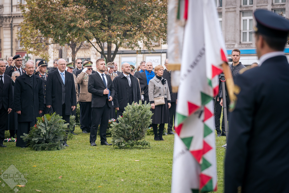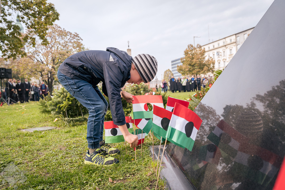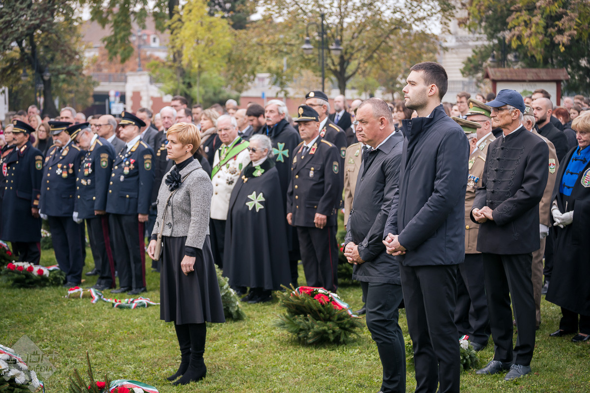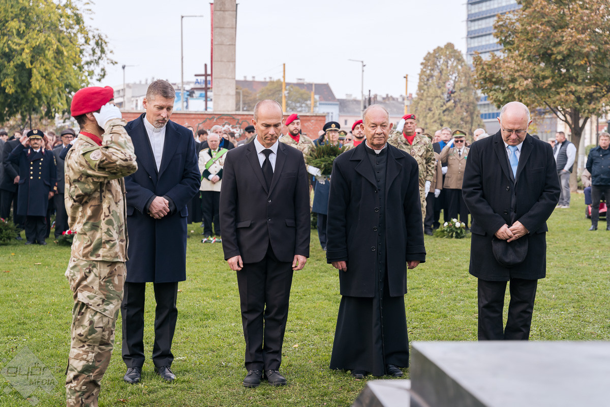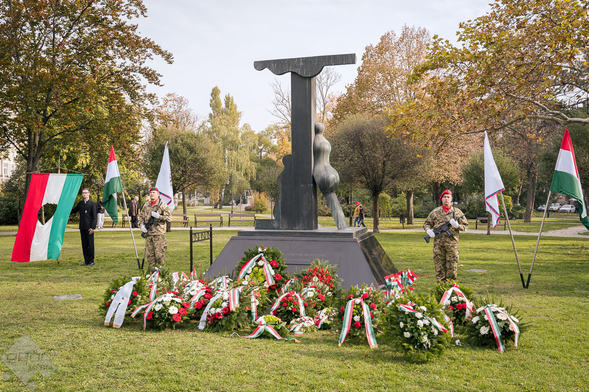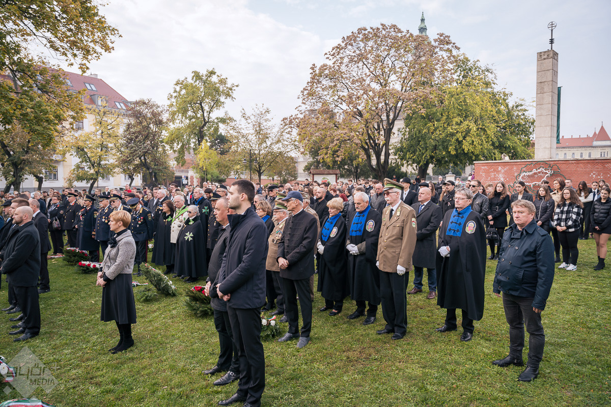 A megemlékezésre a Bisinger sétányon, a Golgota emlékműnél került sor, ahol Pintér Bence, Győr polgármestere mondott ünnepi beszédet, aki hangsúlyozta: amíg van, aki emlékszik 1956 hőseire, addig haláluk nem volt hiábavaló. A forradalom lángja sosem aludt ki, nem tiporható el.