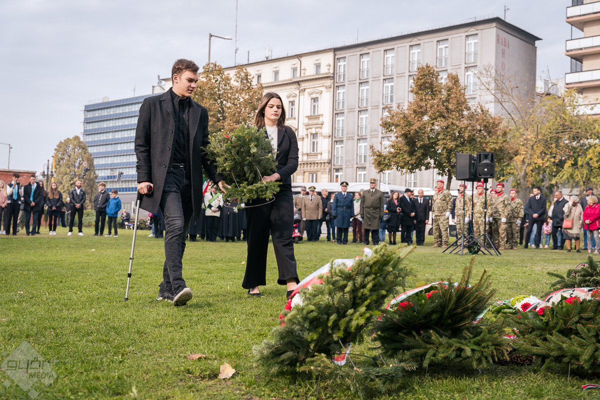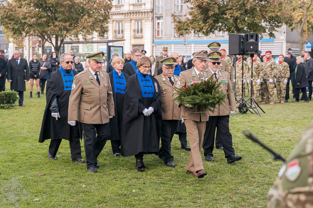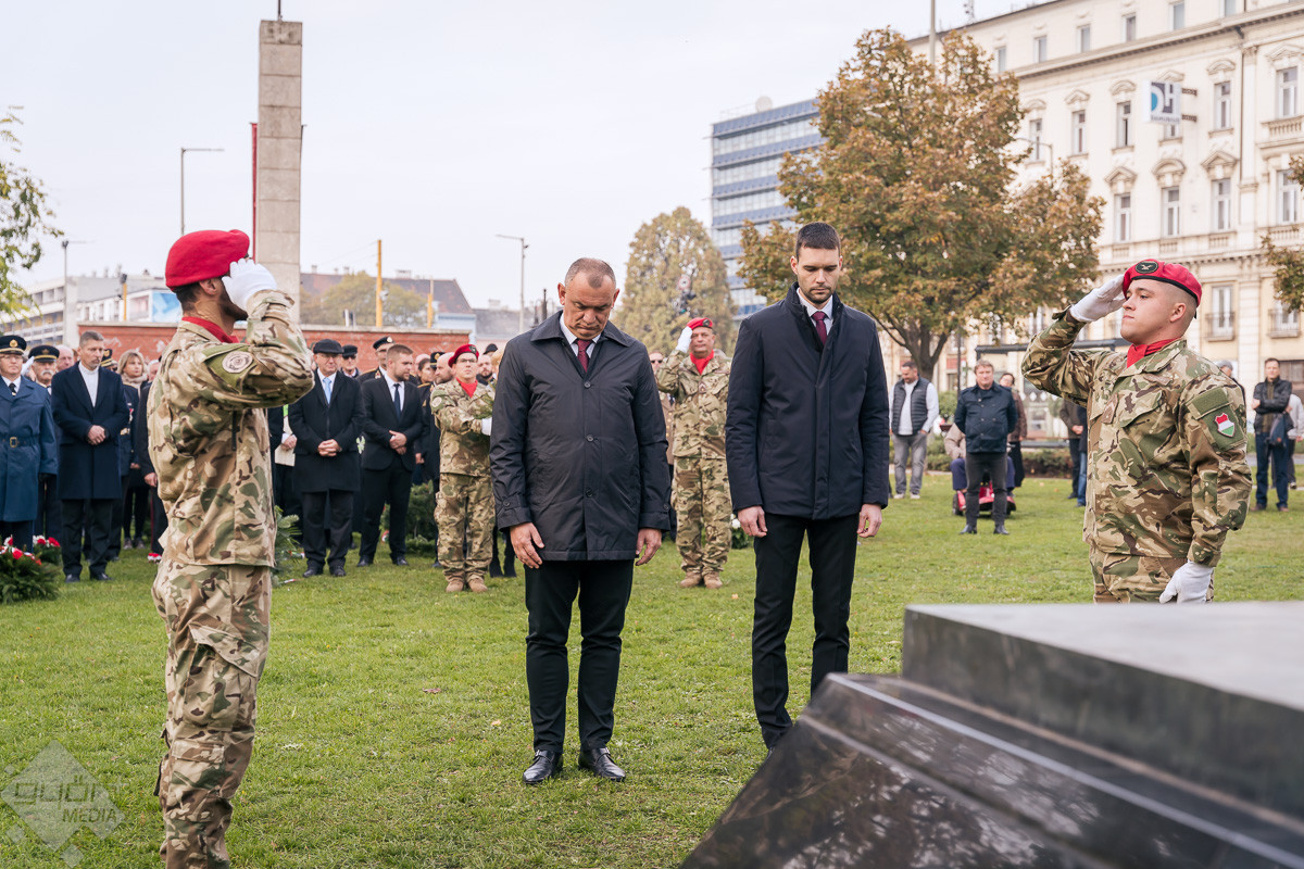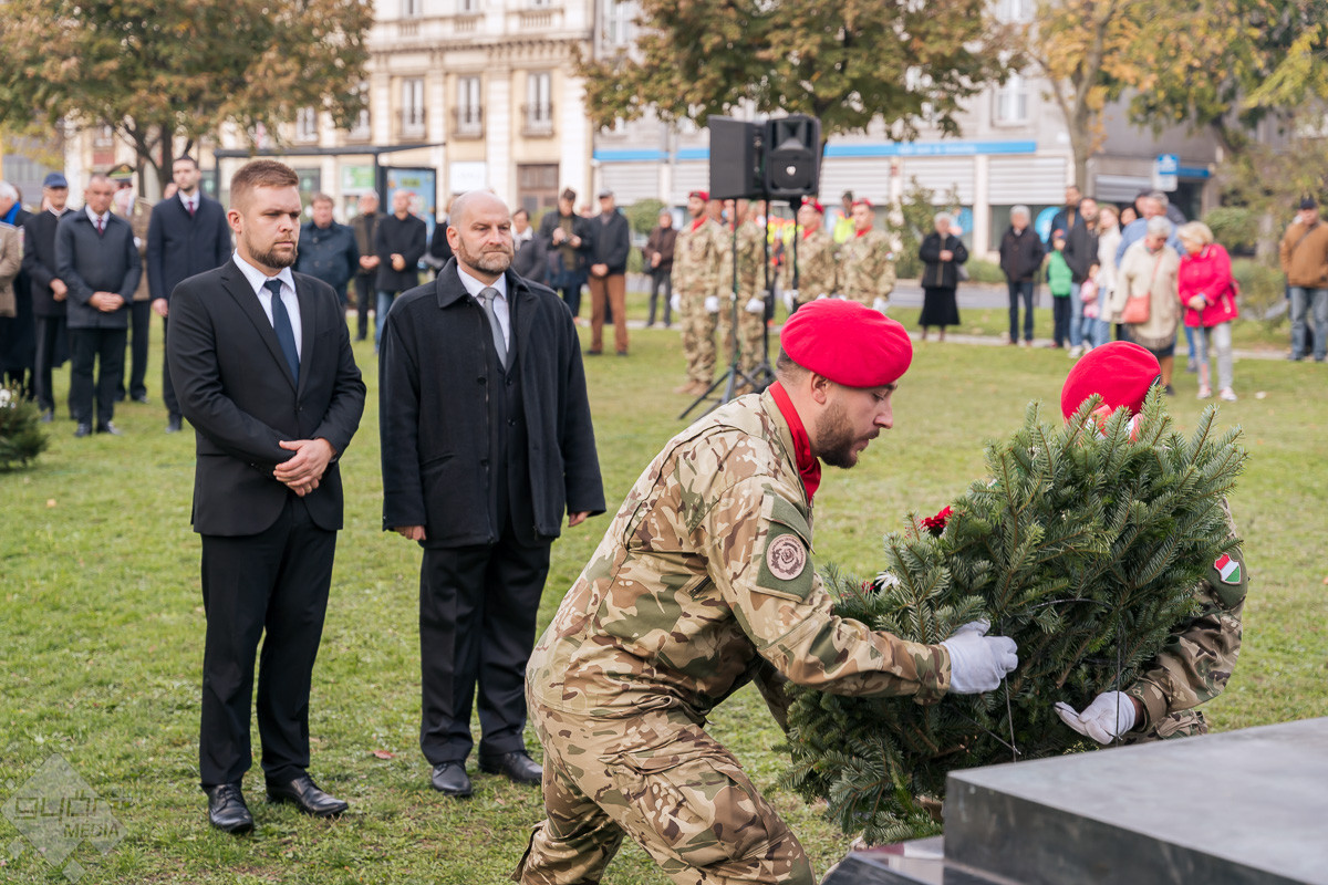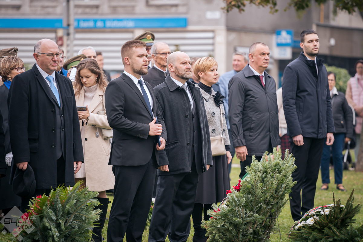 A megemlékezésre a Bisinger sétányon, a Golgota emlékműnél került sor, ahol Pintér Bence, Győr polgármestere mondott ünnepi beszédet, aki hangsúlyozta: amíg van, aki emlékszik 1956 hőseire, addig haláluk nem volt hiábavaló. A forradalom lángja sosem aludt ki, nem tiporható el.