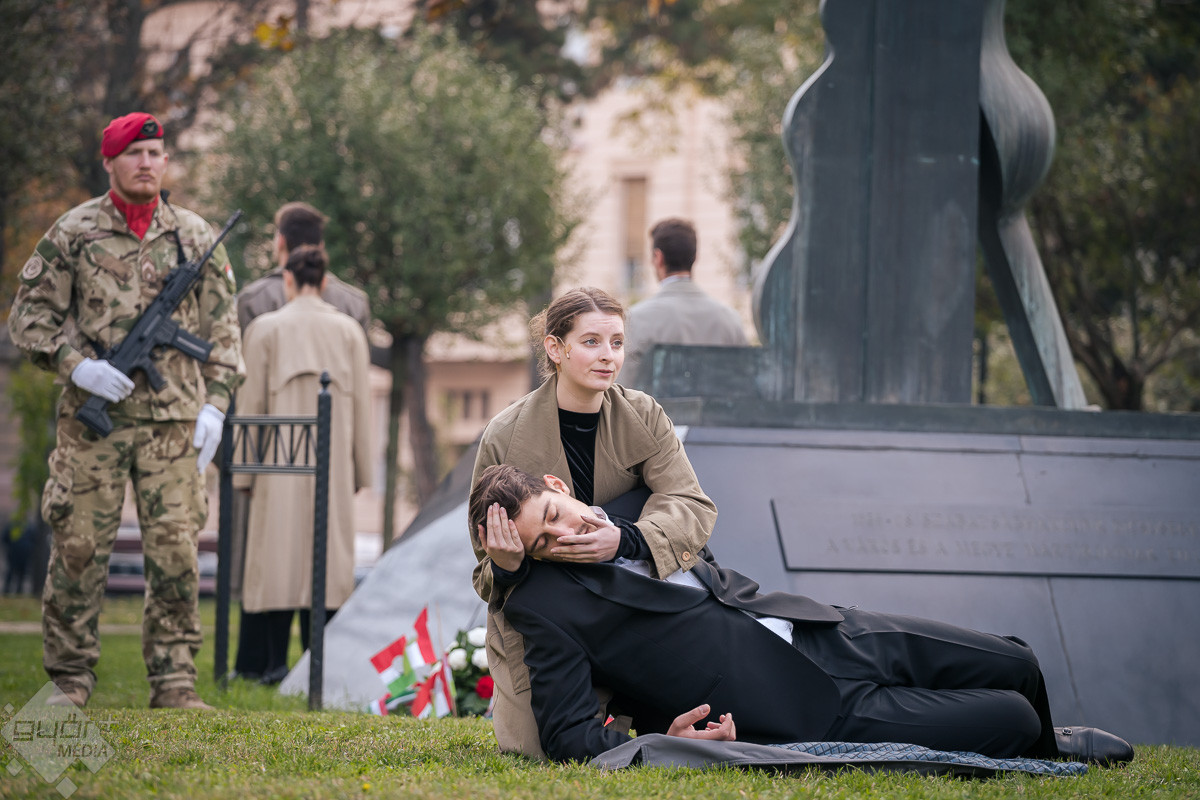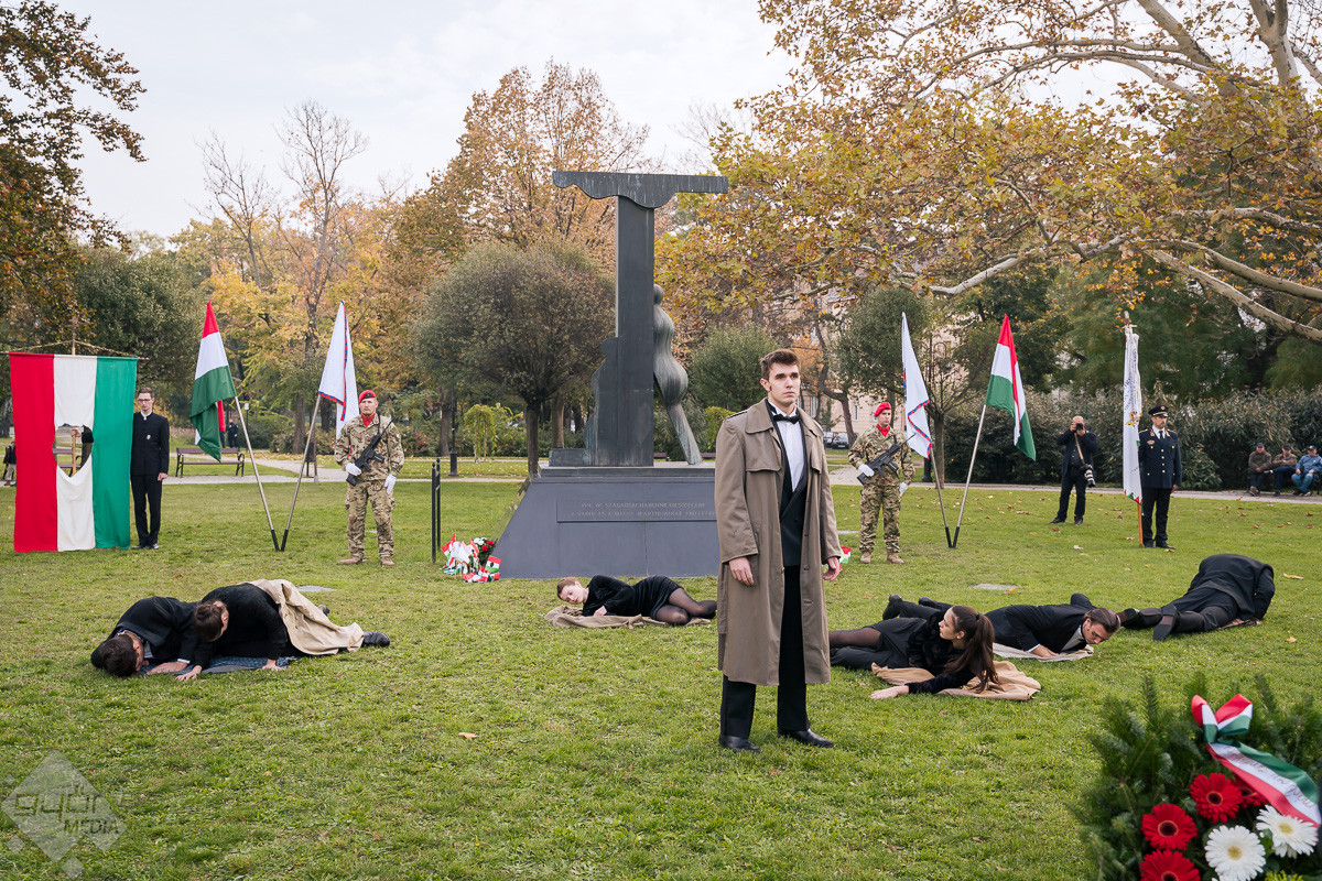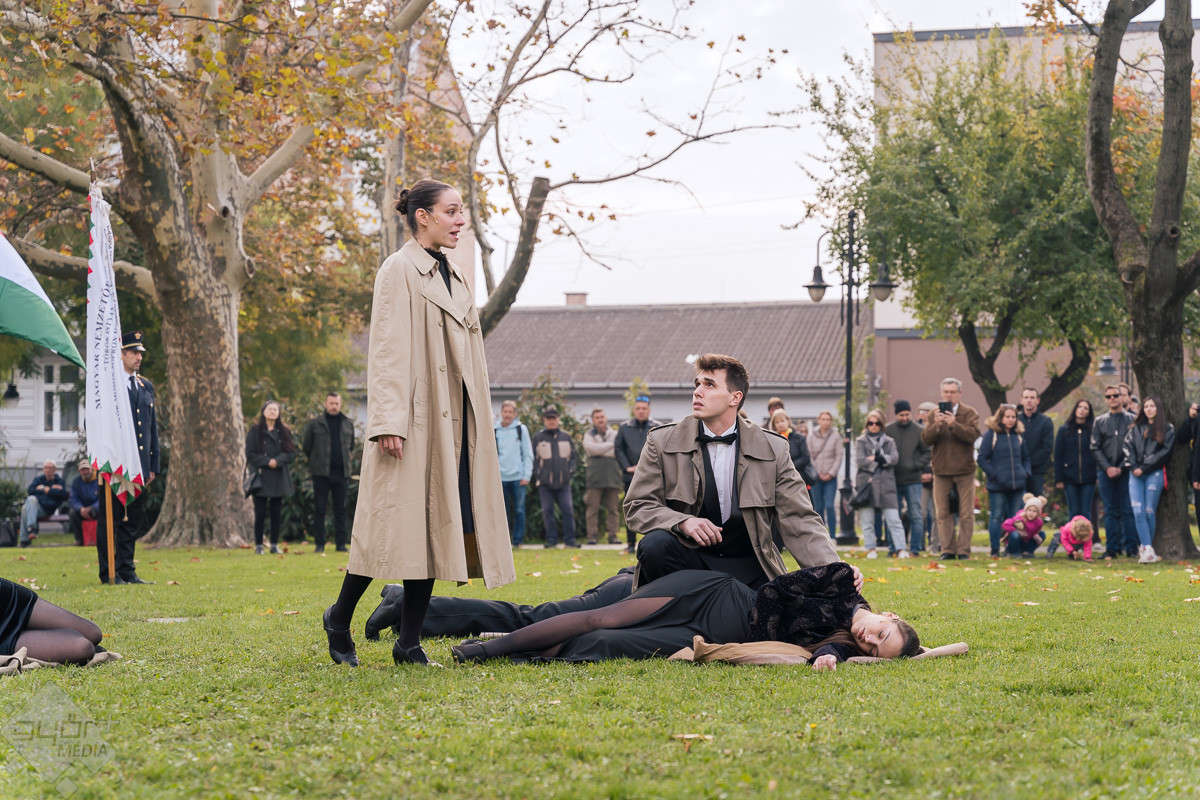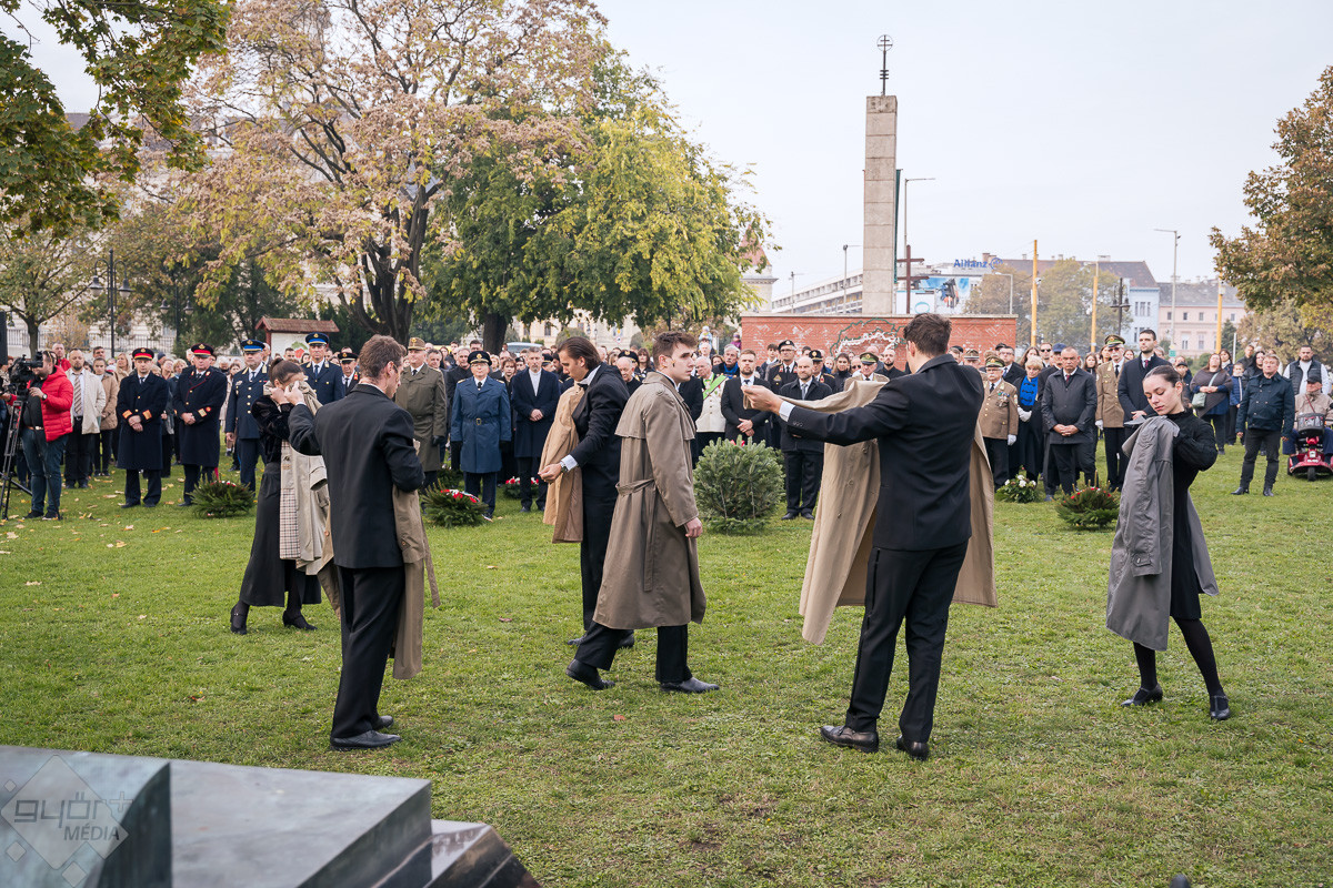 A megemlékezésen közreműködtek a Győri Nemzeti Színház színész hallgatói. A műsort követően a résztvevők elhelyezték az emlékezés koszorúit, virágait.